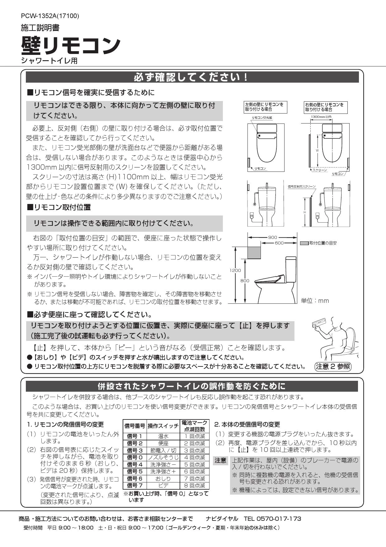 CW-EA21 シャワートイレパッソ用壁リモコン施工説明書