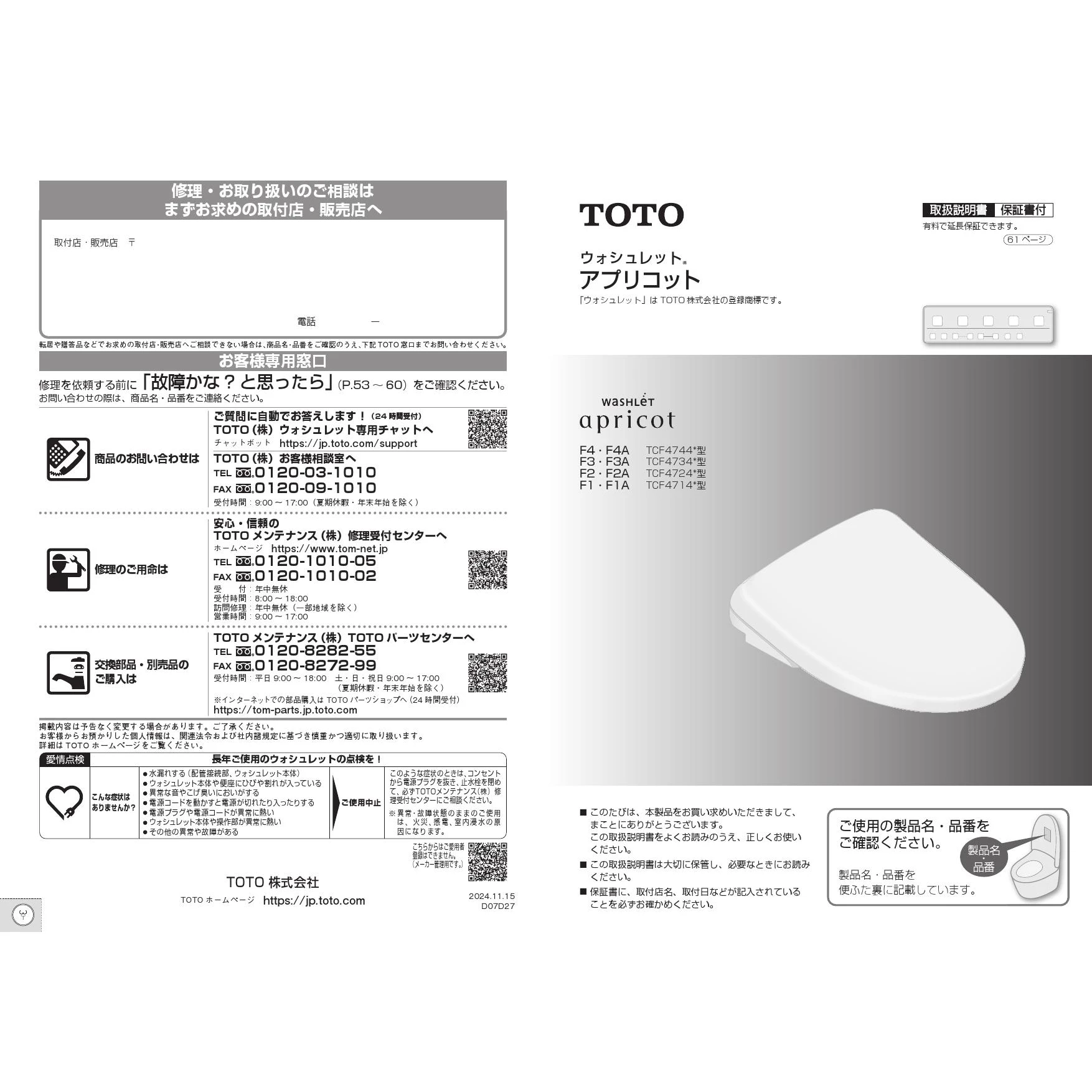 TCF4724 ウォシュレット アプリコットF2取扱説明書