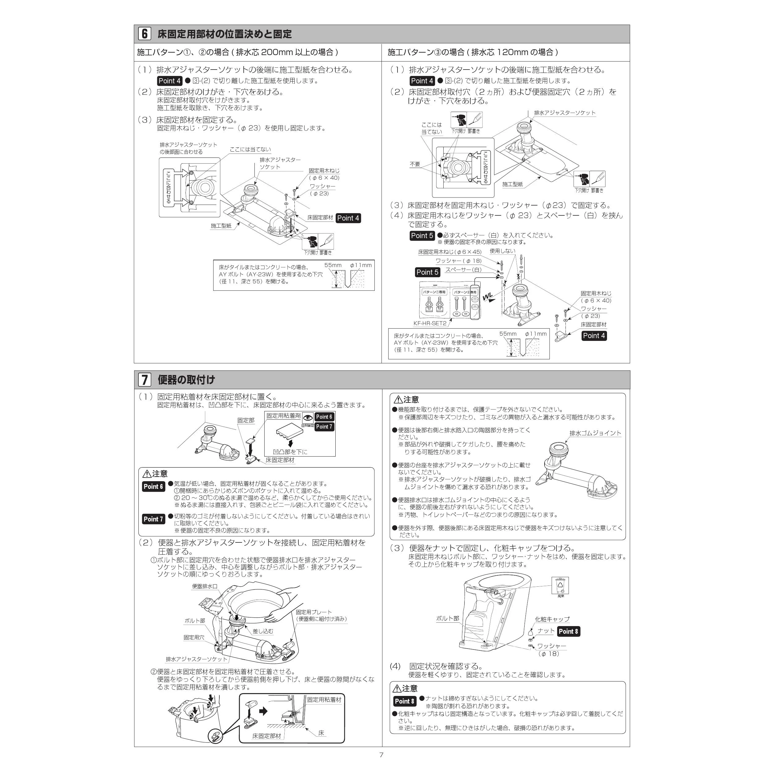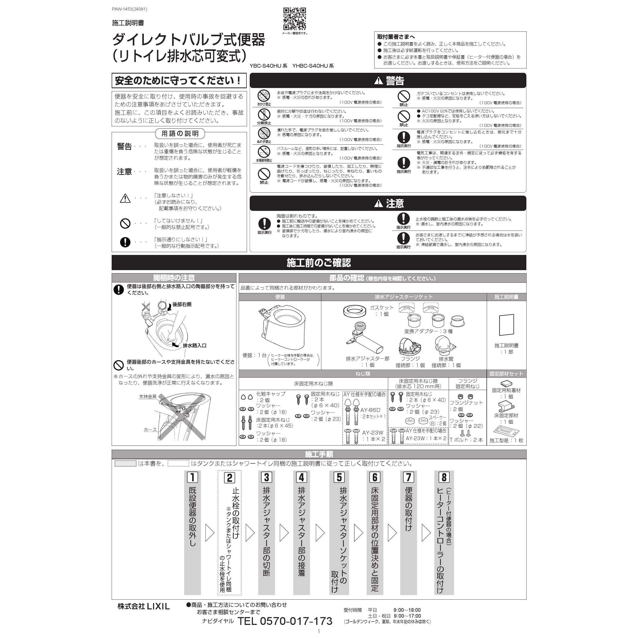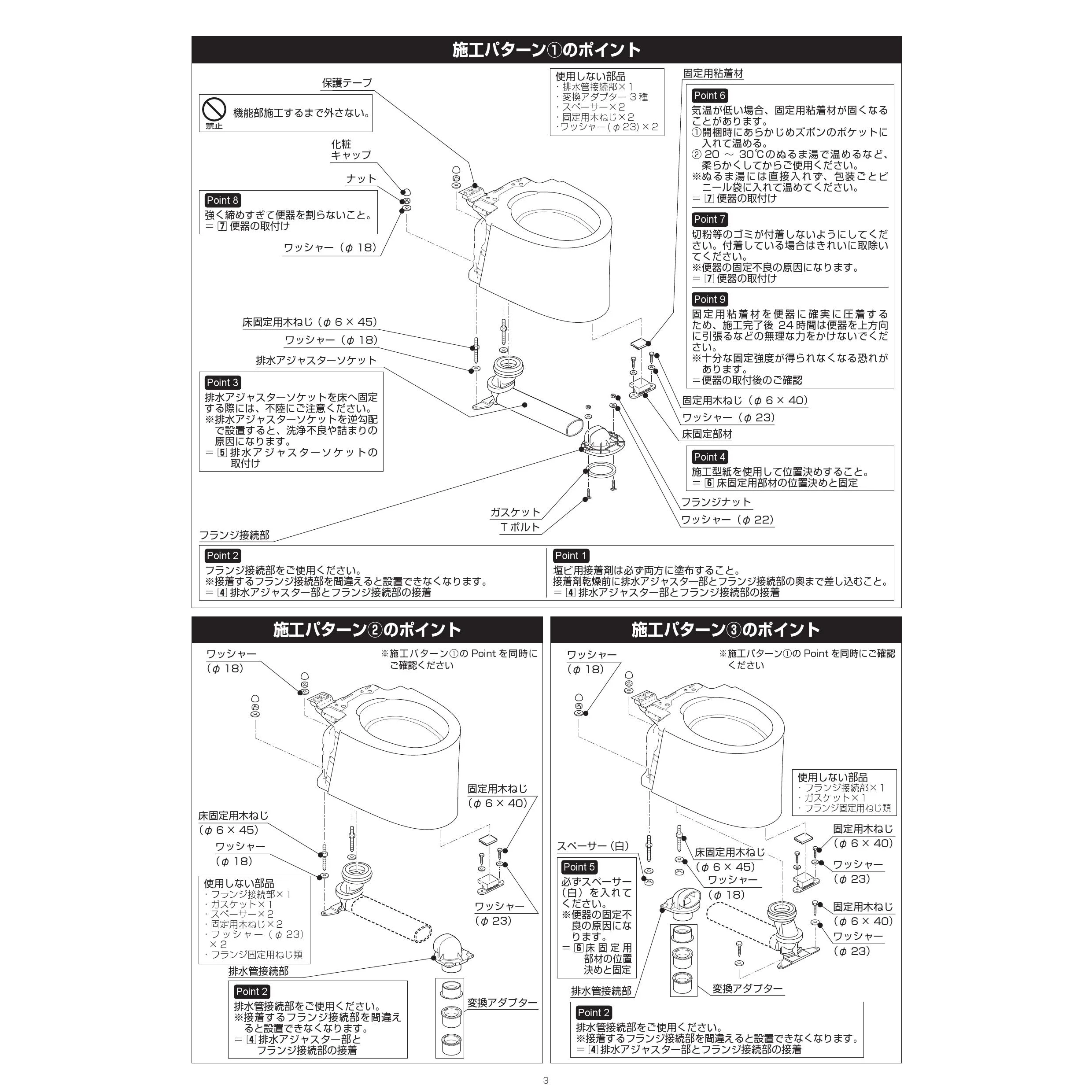 YBC-S40HU サティスSリトイレ便器部 注意事項施工説明書