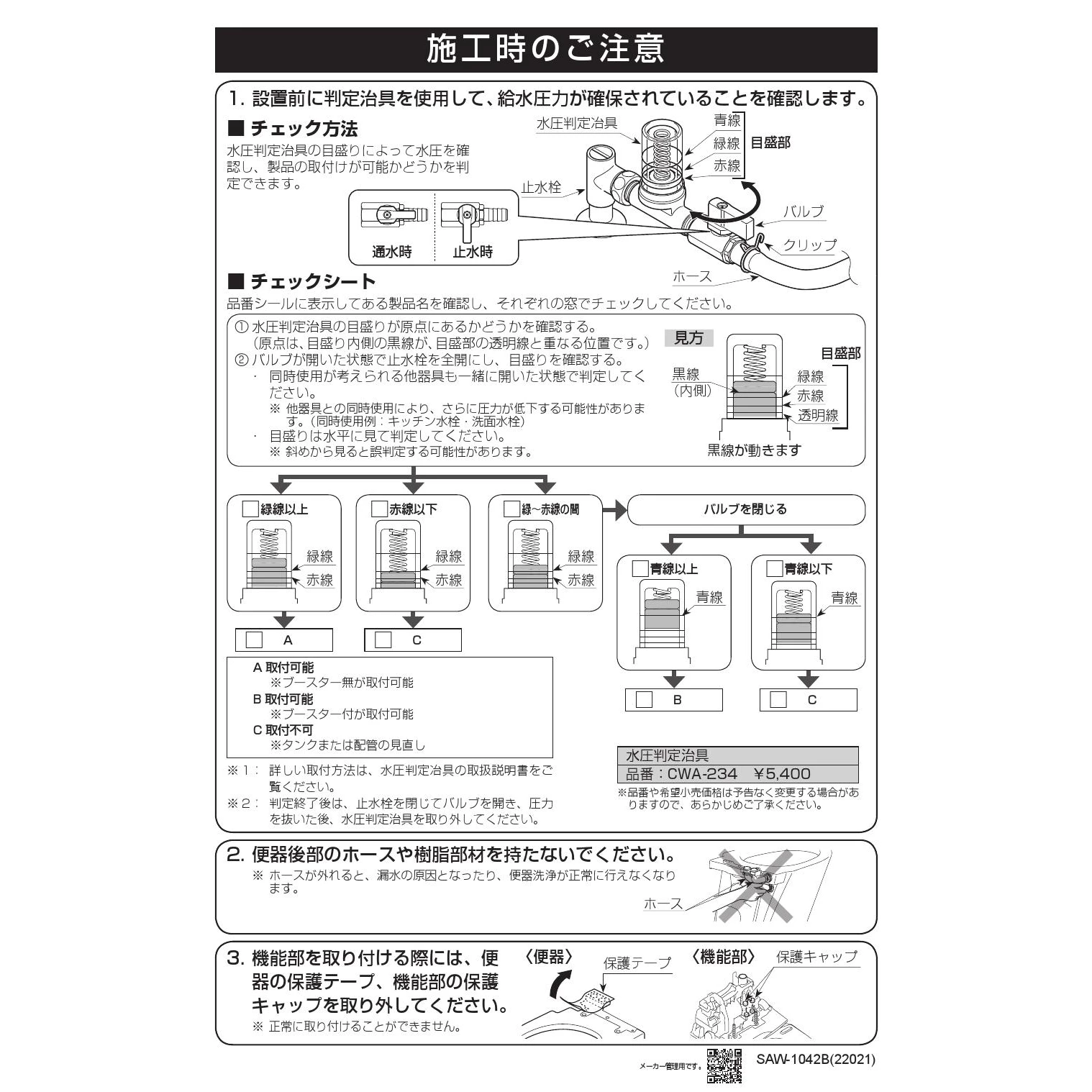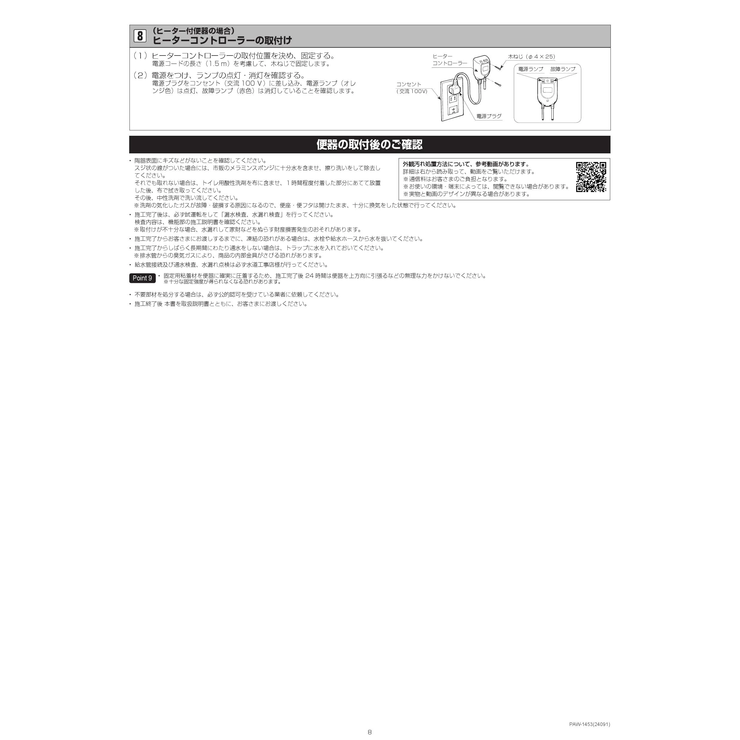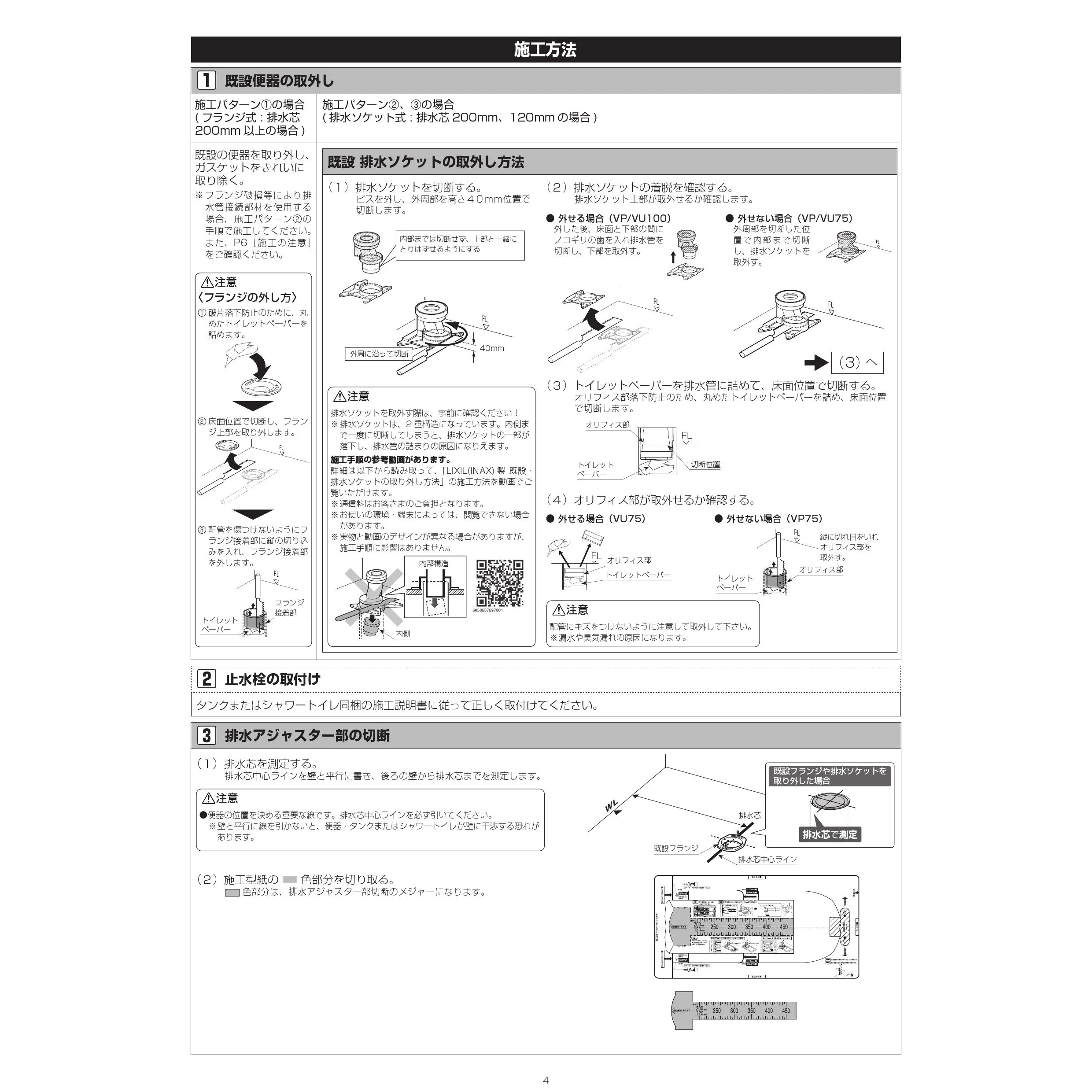 YBC-S40HU サティスSリトイレ便器部 注意事項施工説明書