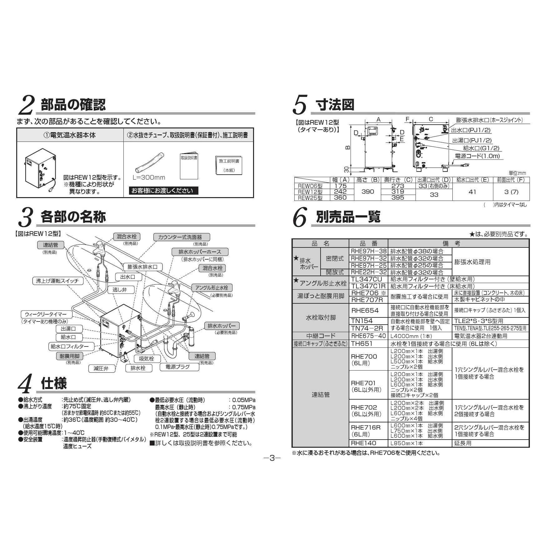 REW25A1D1RR パブリック用電気温水器施工説明書