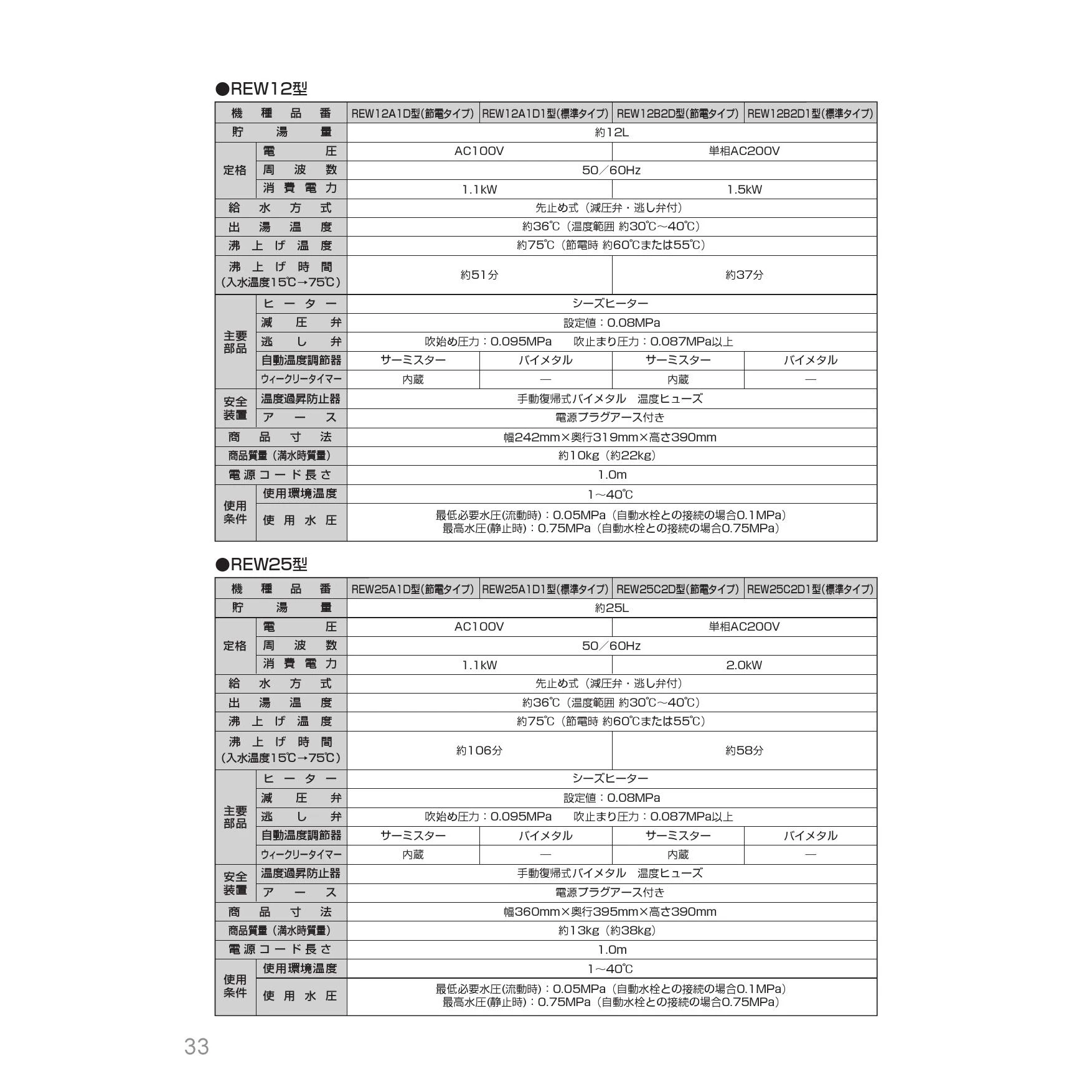 REW25A1D1RR パブリック用電気温水器取扱説明書