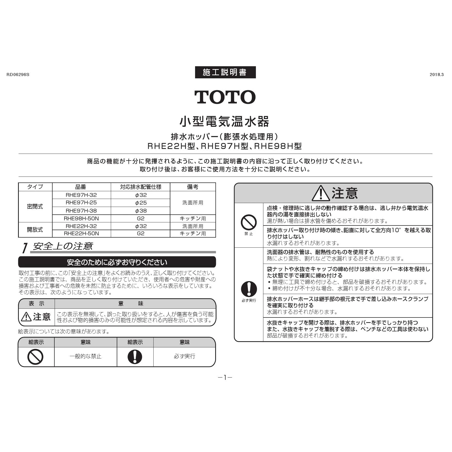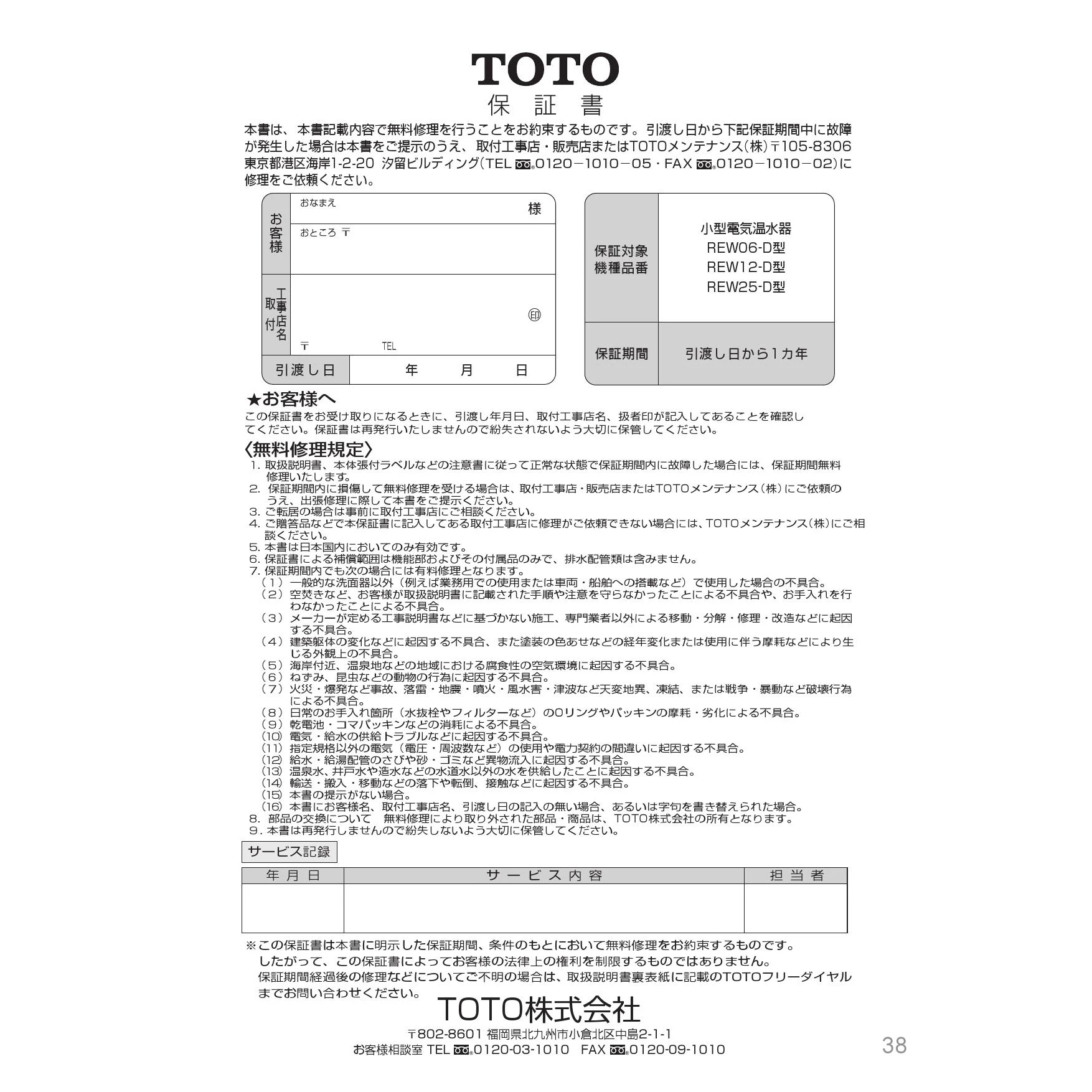 TOTO REW25A1D1RRSCK 取扱説明書 商品図面 施工説明書