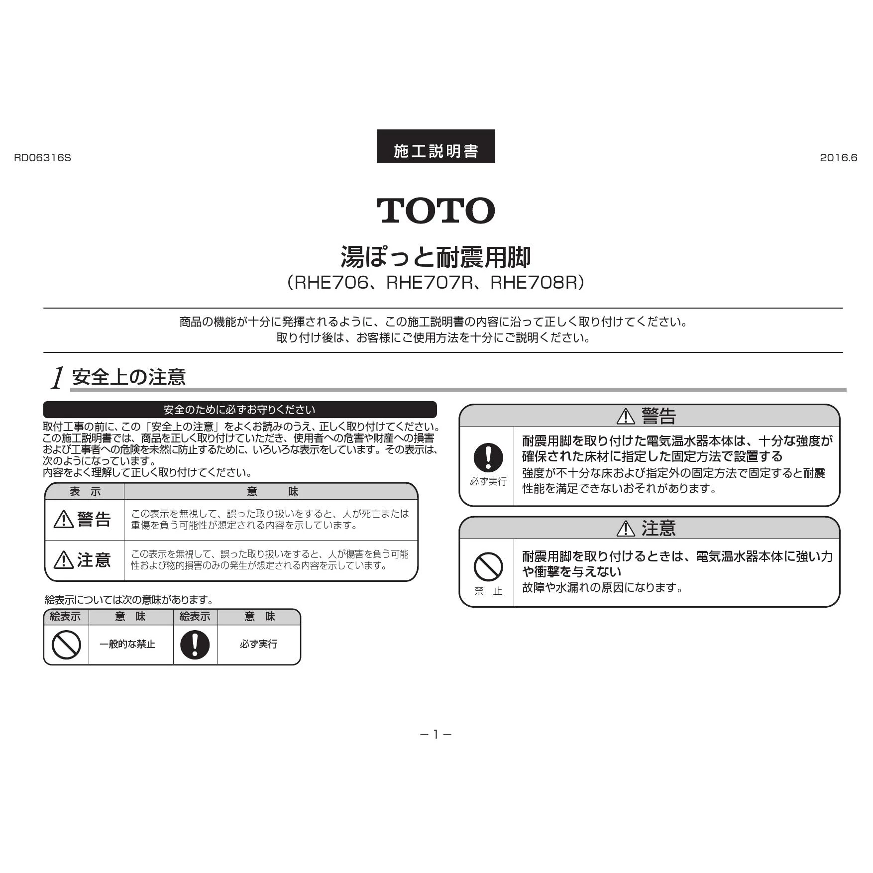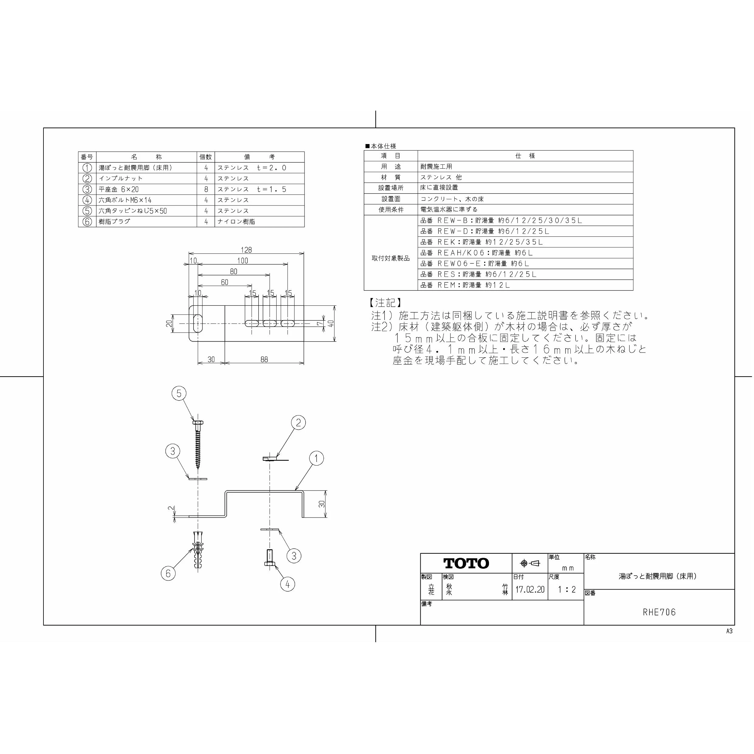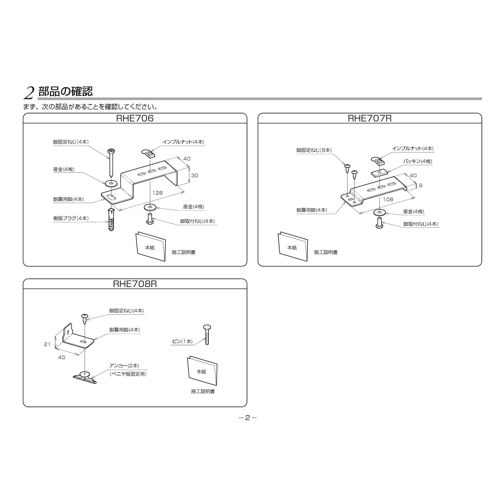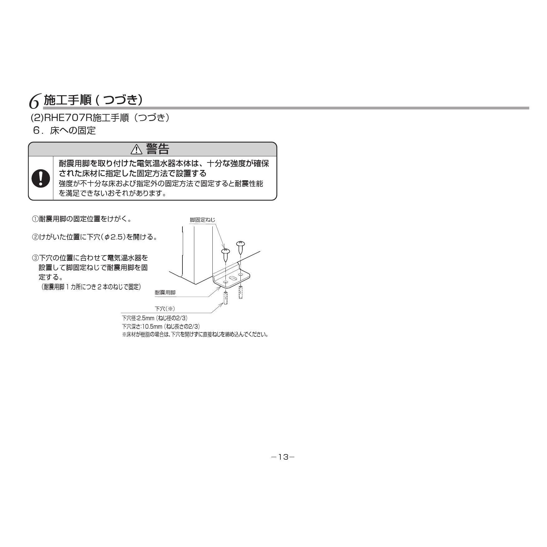 RHE706 湯ぽっと耐震用脚(床用)施工説明書