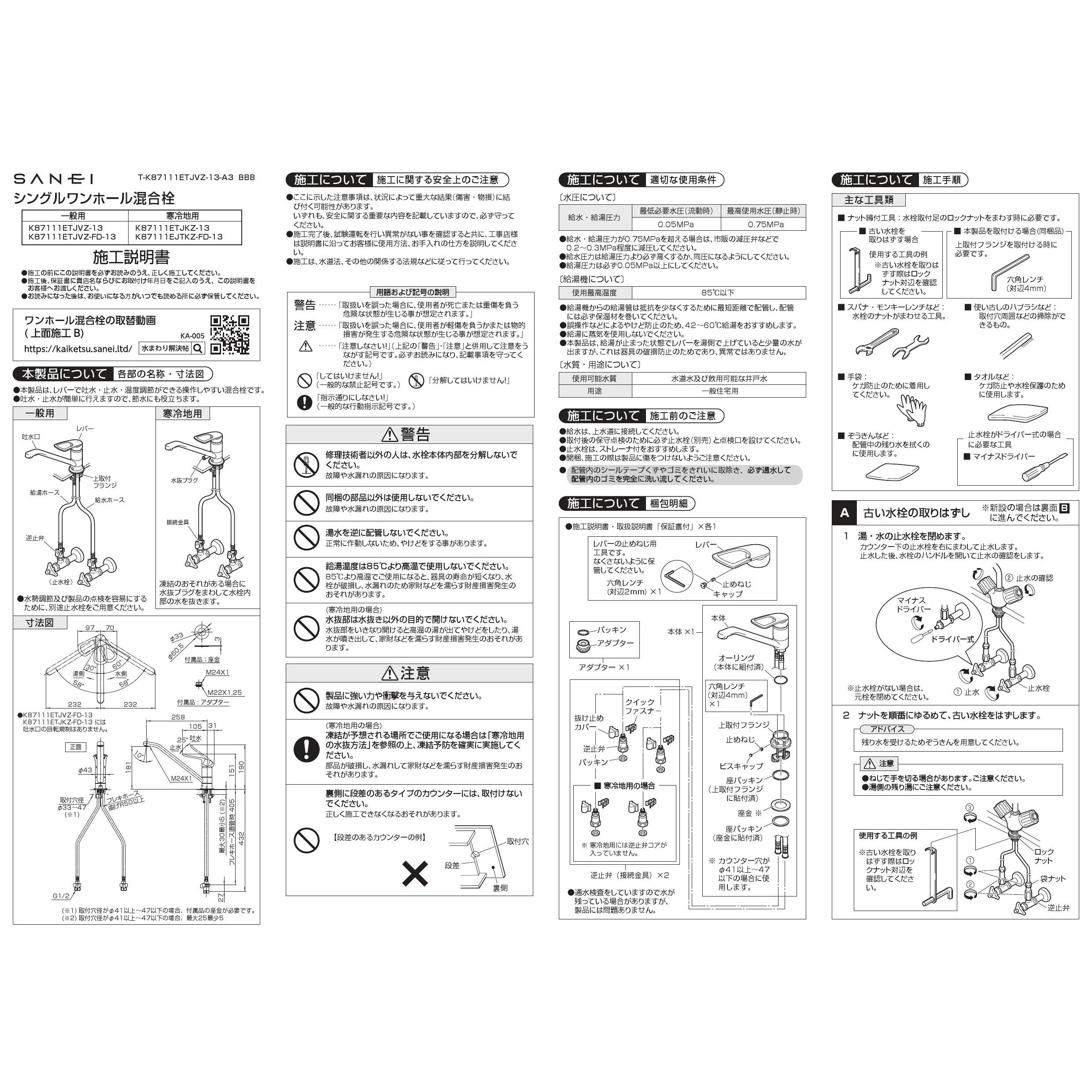 SANEI K87111ETJKZ-FD 取扱説明書 商品図面