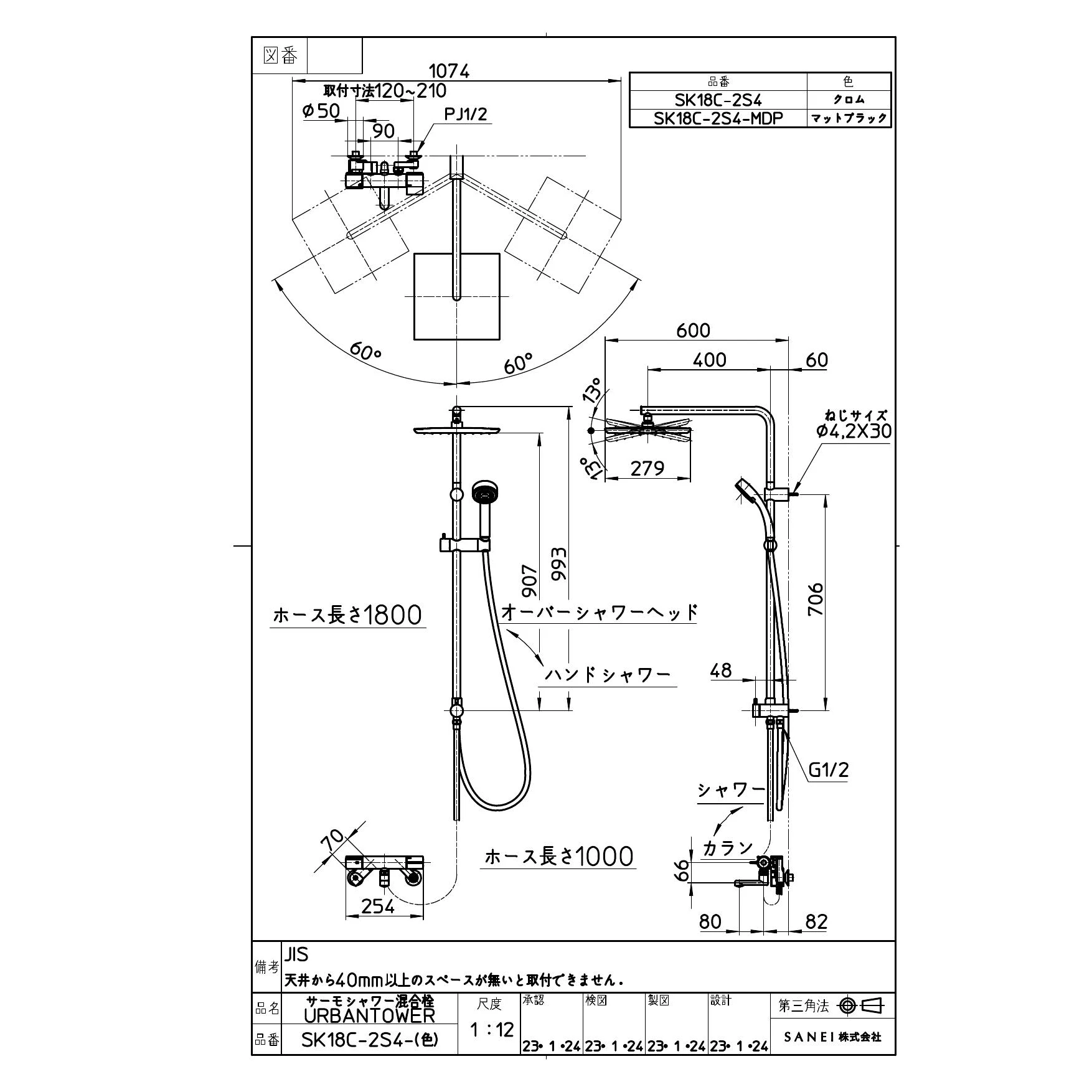 住宅設備のプロストア ダイレクト ホーム SANEI (サンエイ) 水栓・蛇口 混合栓 浴室水栓・蛇口 壁付シャワー混合栓 SK18C-2S4-MDP 図面・説明書 SANEI SK18C-2S4-MDP 商品図面 各種図面のご利用については 免責事項をご確認の上ご利用ください。 SK18C-2S4-MDP SANEI(サンエイ) サーモシャワー混合栓 URBAN TOWER 39.8%OFF 価格 ¥139,131 商品図面 このデータは2025年10月 現在のものです。 商品図面の一括ダウンロード SANEIカスタマーセンター SANEIお問い合わせ SANEIトップページフリーダイヤル:0120-06-9721 受付時間:月~金 9:00~17:00(土日祝、夏季休暇、年末年始を除く) ダイレクトが選ばれる理由 プロストア ダイレクトは、一流メーカー住宅設備機器のトイレ・水栓・給湯器などを卸値価格で販売している会社です。 リフォームに携わる毎日忙しいお客様(一人親方の業者様や工務店様、マンションの管理をしている方)の時間コストを圧縮する(手早くご購入できる)ために、取扱商品35,000点、在庫商品2,300点以上の品揃え!商品仕様などの情報源も支援出来る様なショップを目指しております。 住宅設備機器でお悩みの方は プロストアダイレクトにご相談ください! また、土日、祝祭日、年末年始、夏季期間は翌営業日以降の対応となりますのでご了承ください。 お問い合わせフォーム 平日10時までの注文で在庫商品なら当日発送! 水栓金具を知る× SANEI (サンエイ) 水栓・蛇口 混合栓浴室水栓・蛇口壁付シャワー混合栓 ご利用ガイド キャンセルについて ご注文後のキャンセルは一切承りかねます。品番ご確認の上ご注文ください。 送料について 通常配送料全国一律870円!お買い上げ合計30,000円以上で、通常配送料無料! お支払いについて 代金引換・銀行振込・3Dセキュア対応のクレジットカードがご利用頂けます。 荷受け時の注意事項 荷受け時に必ずお届けの品番とご注文品番に相違がないかをご確認ください。 お届けについて 当店在庫商品の場合、AM10:00までのご注文(ご入金確認)にて当日発送。 返品・交換について 商品の相違や不足が認められる場合、到着後7日以内にご連絡ください。 全商品メーカー保証あり 当店の取り扱い商品は、メーカー正規品の新品につき、メーカー保証が適用されております。 営業日・営業時間について 10:00~18:00(土日祝除く)。時間外のお問合せ・御注文は翌営業日より順次対応。 SSLについて 当店を安心してご利用していただける様、RapidSSLを導入しております。 商品検索 お探しの商品が見つからない場合は、商品名や品番よりお探し頂けます。 検索 住宅設備のプロストア ダイレクト ホーム SANEI (サンエイ) 水栓・蛇口 混合栓 浴室水栓・蛇口 壁付シャワー混合栓 SK18C-2S4-MDP 図面・説明書 住宅設備のプロストア ダイレクト ホーム 水栓・蛇口(キッチン・浴室・洗面) 浴室・お風呂用水栓・蛇口 壁付きタイプ浴室水栓 SK18C-2S4-MDP 図面・説明書