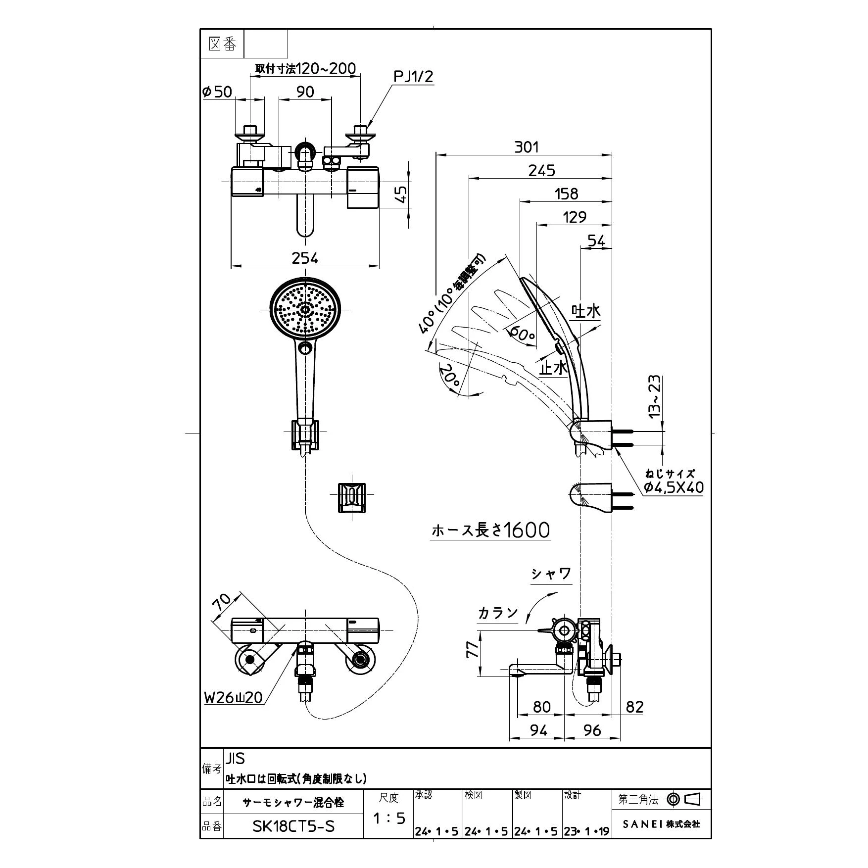 住宅設備のプロストア ダイレクト ホーム SANEI (サンエイ) 水栓・蛇口 混合栓 浴室水栓・蛇口 壁付シャワー混合栓 SK18CT5-S-MDP 図面・説明書 SANEI SK18CT5-S-MDP 商品図面 各種図面のご利用については 免責事項をご確認の上ご利用ください。 SK18CT5-S-MDP SANEI(サンエイ) サーモシャワー混合栓 45.0%OFF 価格 ¥82,885 商品図面 このデータは2025年10月 現在のものです。 商品図面の一括ダウンロード SANEIカスタマーセンター SANEIお問い合わせ SANEIトップページフリーダイヤル:0120-06-9721 受付時間:月~金 9:00~17:00(土日祝、夏季休暇、年末年始を除く) ダイレクトが選ばれる理由 プロストア ダイレクトは、一流メーカー住宅設備機器のトイレ・水栓・給湯器などを卸値価格で販売している会社です。 リフォームに携わる毎日忙しいお客様(一人親方の業者様や工務店様、マンションの管理をしている方)の時間コストを圧縮する(手早くご購入できる)ために、取扱商品35,000点、在庫商品2,300点以上の品揃え!商品仕様などの情報源も支援出来る様なショップを目指しております。 住宅設備機器でお悩みの方は プロストアダイレクトにご相談ください! また、土日、祝祭日、年末年始、夏季期間は翌営業日以降の対応となりますのでご了承ください。 お問い合わせフォーム 平日10時までの注文で在庫商品なら当日発送! 水栓金具を知る× SANEI (サンエイ) 水栓・蛇口 混合栓浴室水栓・蛇口壁付シャワー混合栓 ご利用ガイド キャンセルについて ご注文後のキャンセルは一切承りかねます。品番ご確認の上ご注文ください。 送料について 通常配送料全国一律870円!お買い上げ合計30,000円以上で、通常配送料無料! お支払いについて 代金引換・銀行振込・3Dセキュア対応のクレジットカードがご利用頂けます。 荷受け時の注意事項 荷受け時に必ずお届けの品番とご注文品番に相違がないかをご確認ください。 お届けについて 当店在庫商品の場合、AM10:00までのご注文(ご入金確認)にて当日発送。 返品・交換について 商品の相違や不足が認められる場合、到着後7日以内にご連絡ください。 全商品メーカー保証あり 当店の取り扱い商品は、メーカー正規品の新品につき、メーカー保証が適用されております。 営業日・営業時間について 10:00~18:00(土日祝除く)。時間外のお問合せ・御注文は翌営業日より順次対応。 SSLについて 当店を安心してご利用していただける様、RapidSSLを導入しております。 商品検索 お探しの商品が見つからない場合は、商品名や品番よりお探し頂けます。 検索 住宅設備のプロストア ダイレクト ホーム SANEI (サンエイ) 水栓・蛇口 混合栓 浴室水栓・蛇口 壁付シャワー混合栓 SK18CT5-S-MDP 図面・説明書 住宅設備のプロストア ダイレクト ホーム 水栓・蛇口(キッチン・浴室・洗面) 浴室・お風呂用水栓・蛇口 壁付きタイプ浴室水栓 SK18CT5-S-MDP 図面・説明書