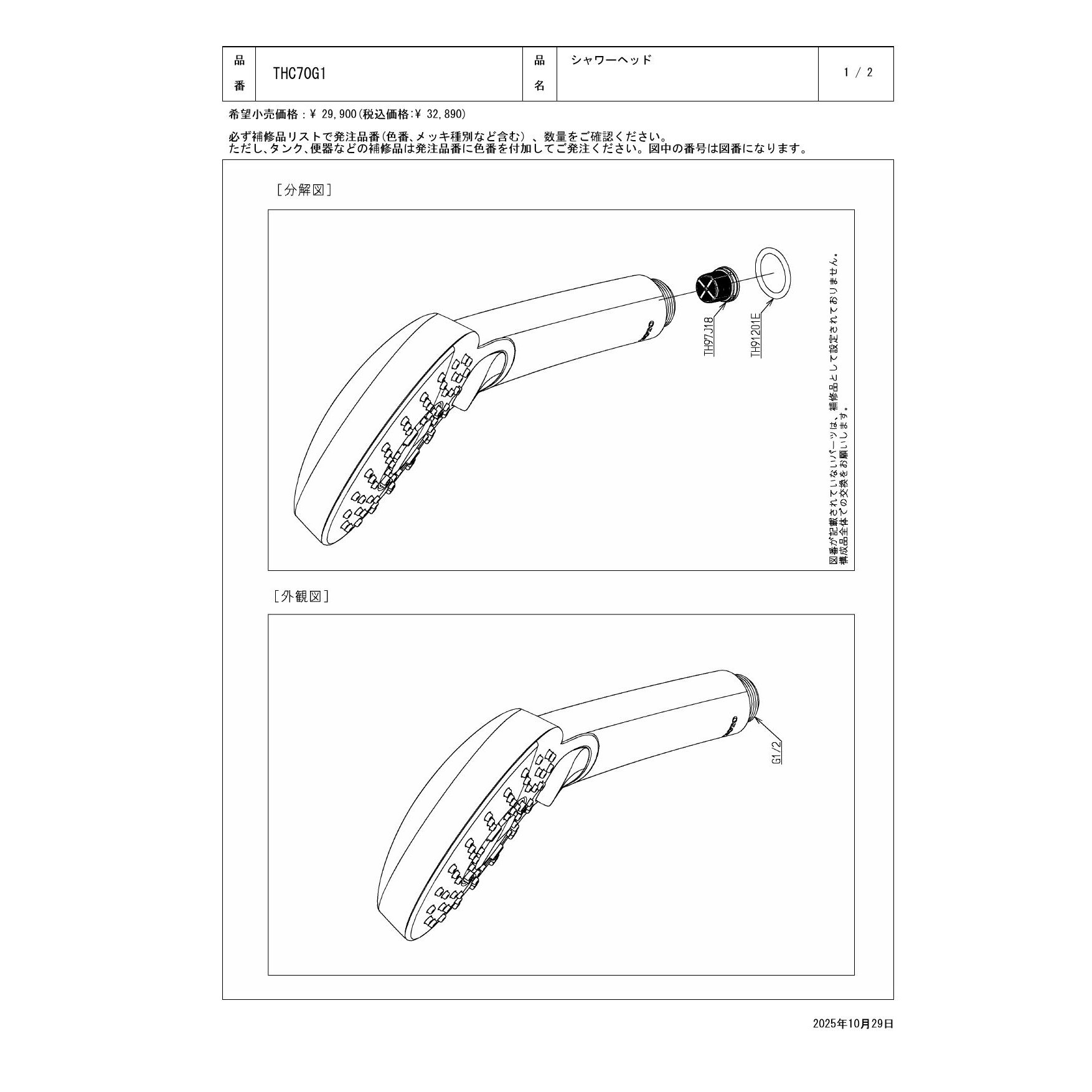 TOTO THC70G1 取扱説明書 商品図面 分解図