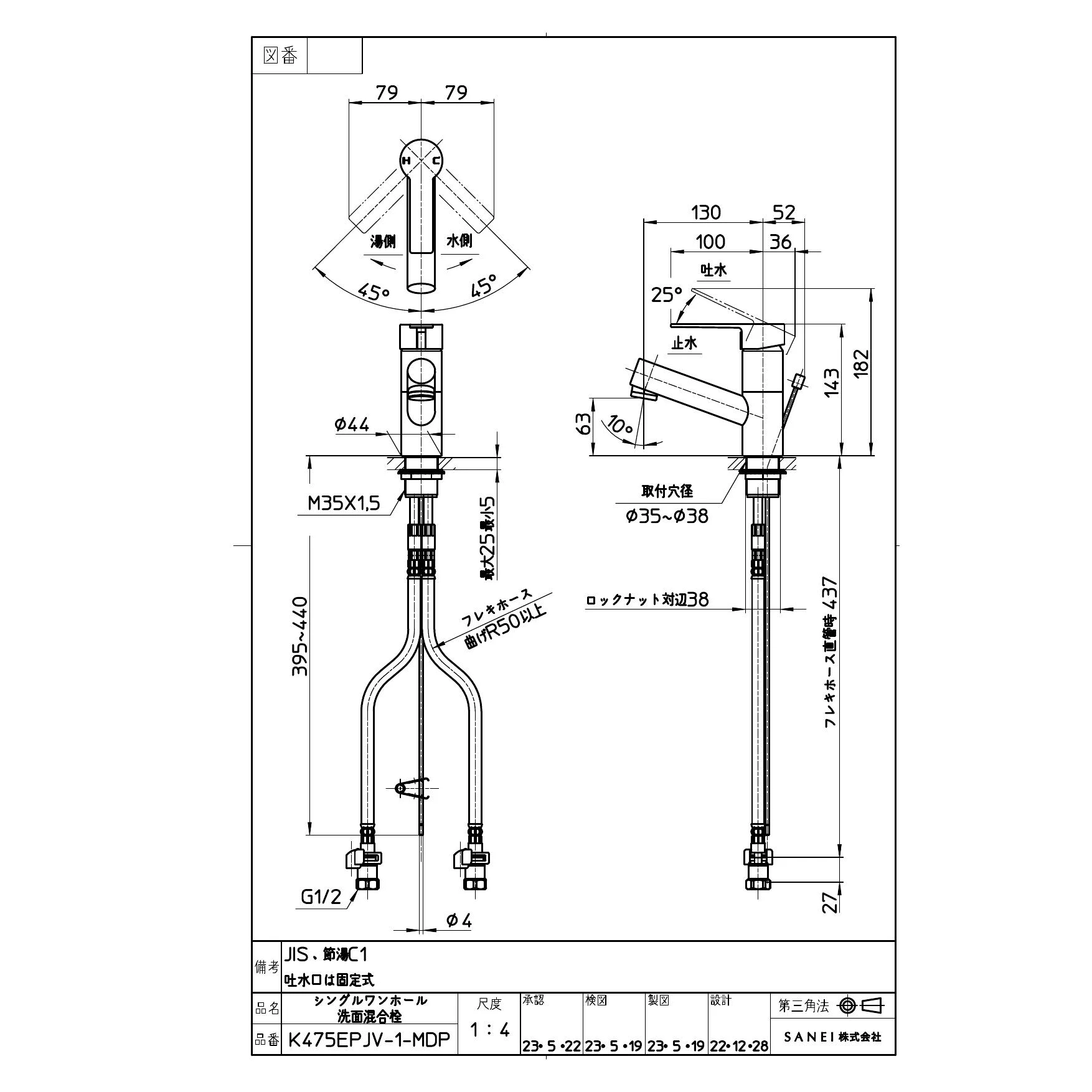SANEI K475EPJV-1-MDP 取扱説明書 商品図面
