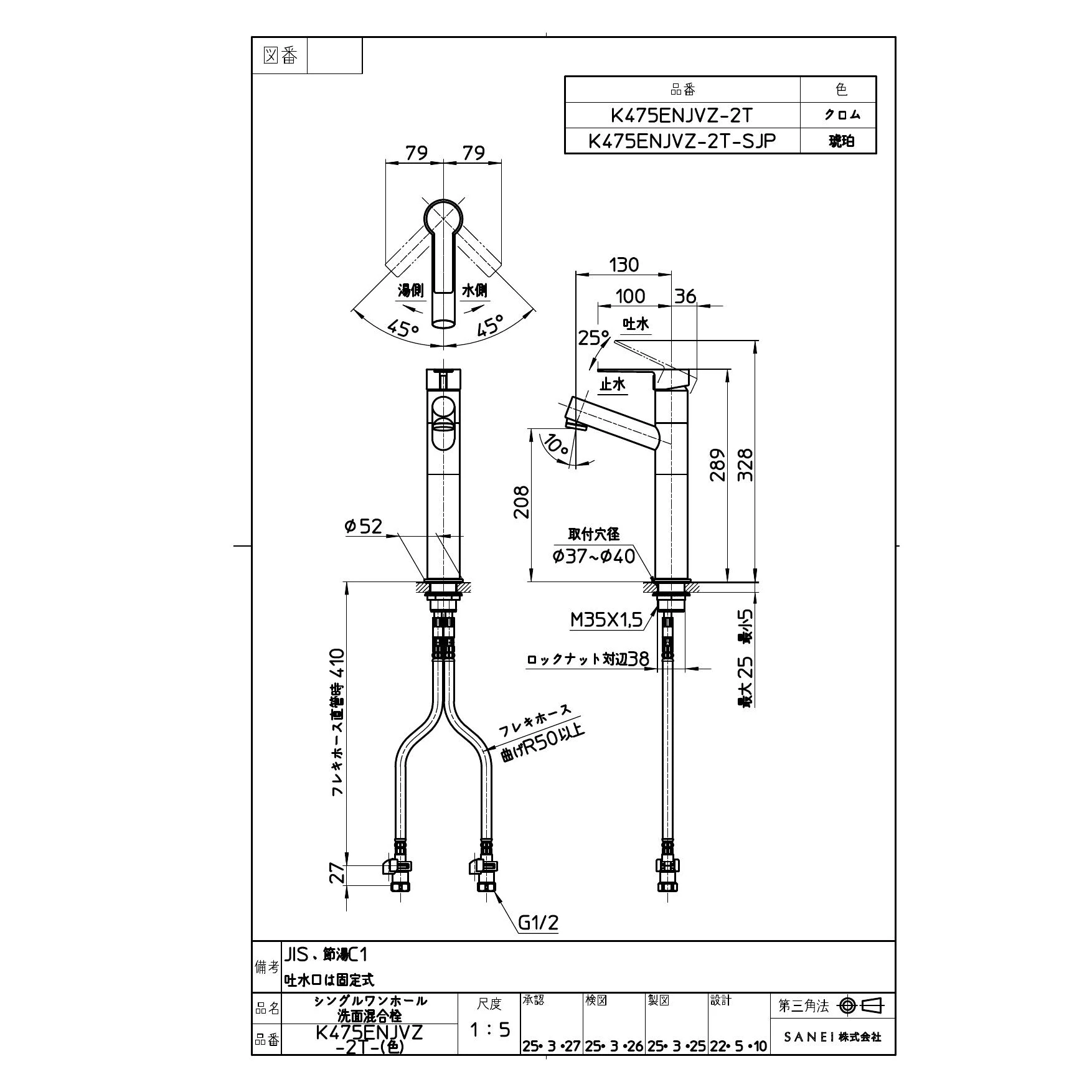 SANEI K475ENJVZ-2T 取扱説明書 商品図面
