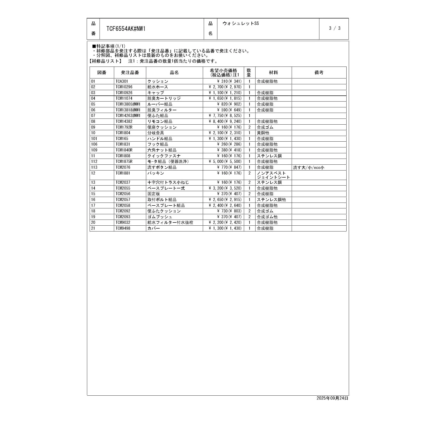 TCF6554AK ウォシュレットSS分解図