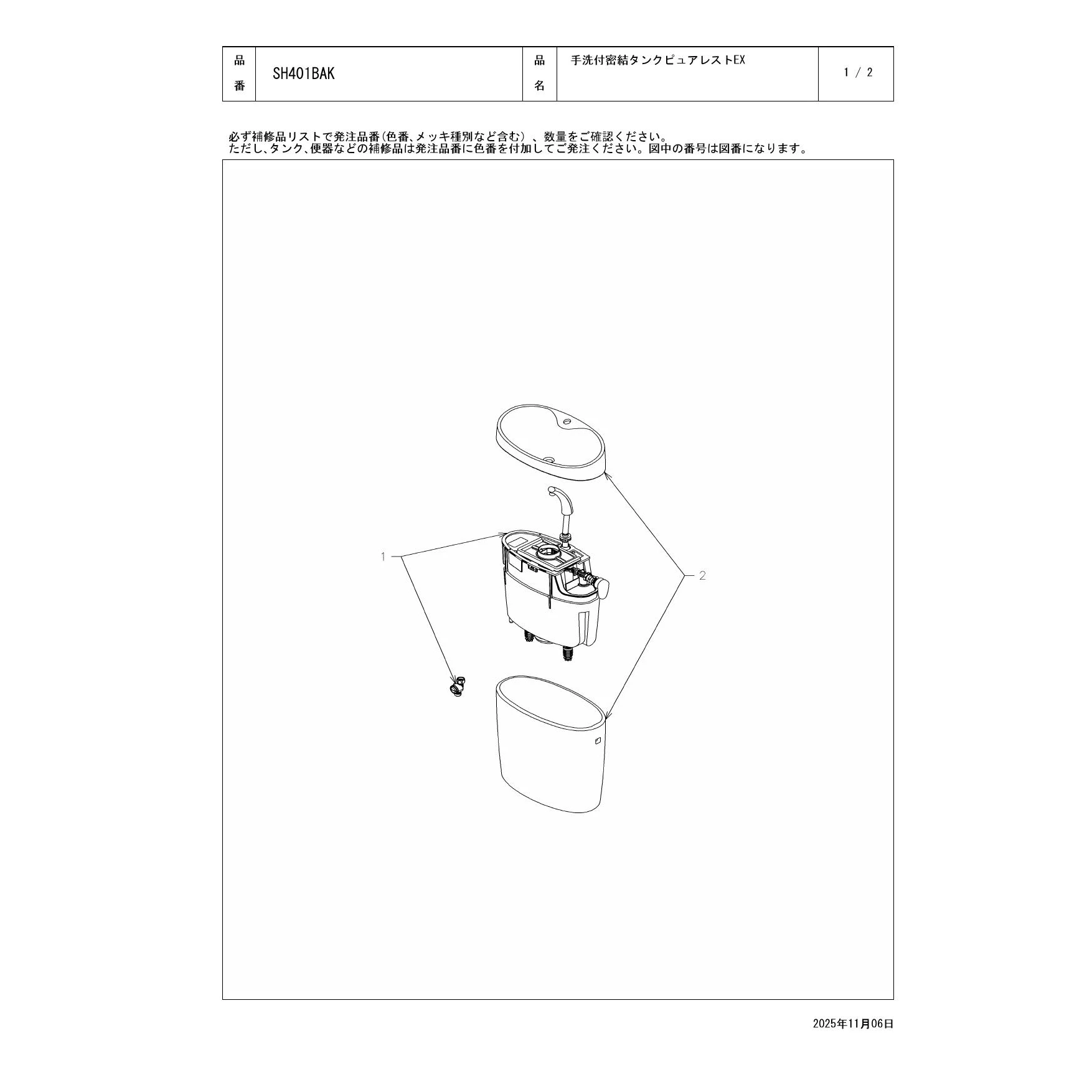 SH401BAK 手洗付密結タンクピュアレストEX分解図