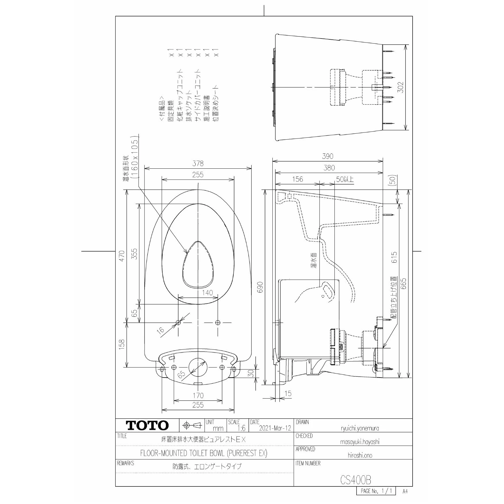 CS400B 床置床排水大便器ピュアレストEX商品図面