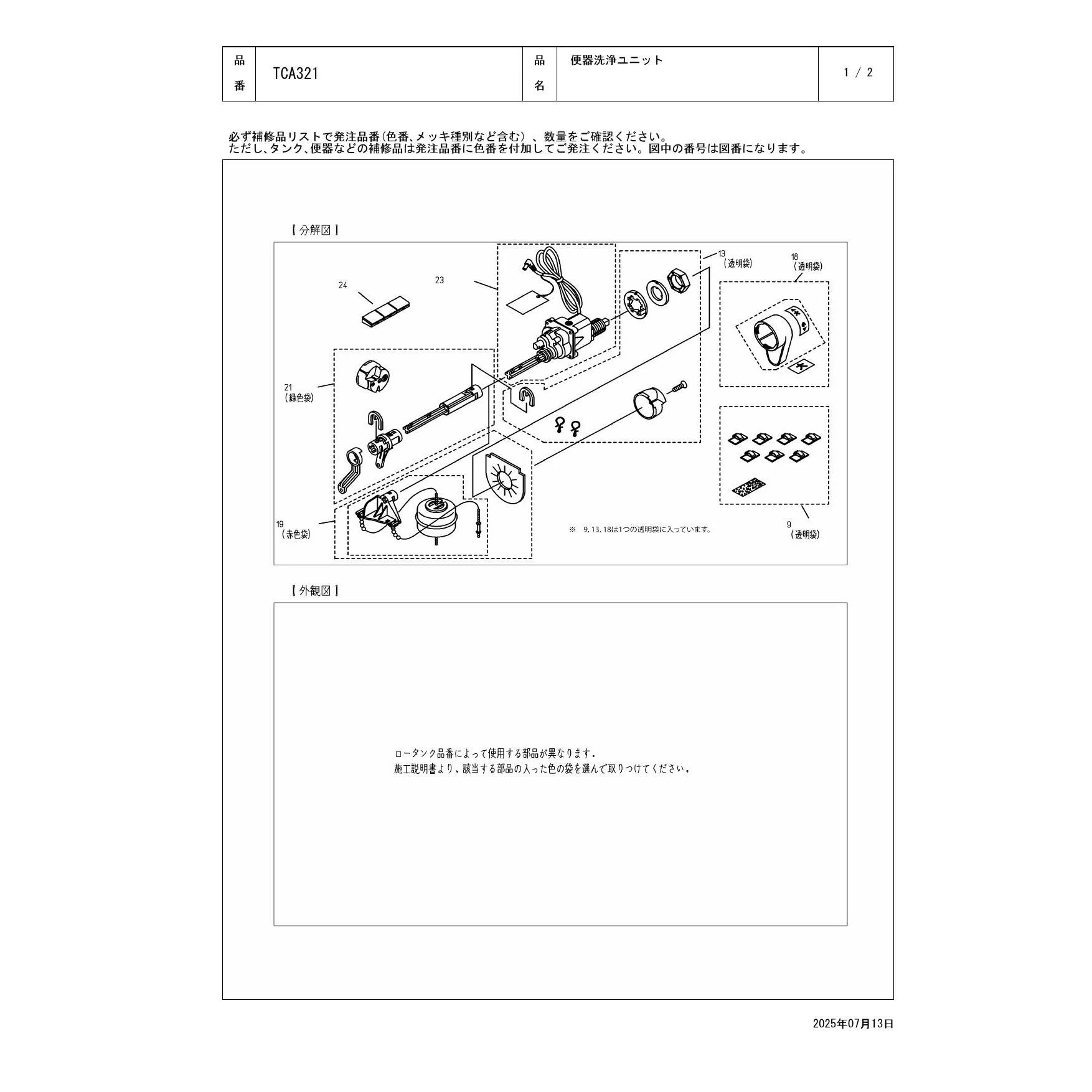 SH400BA 密結タンク(ピュアレストEX)分解図