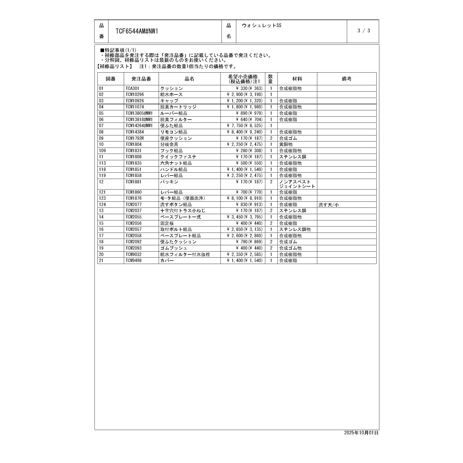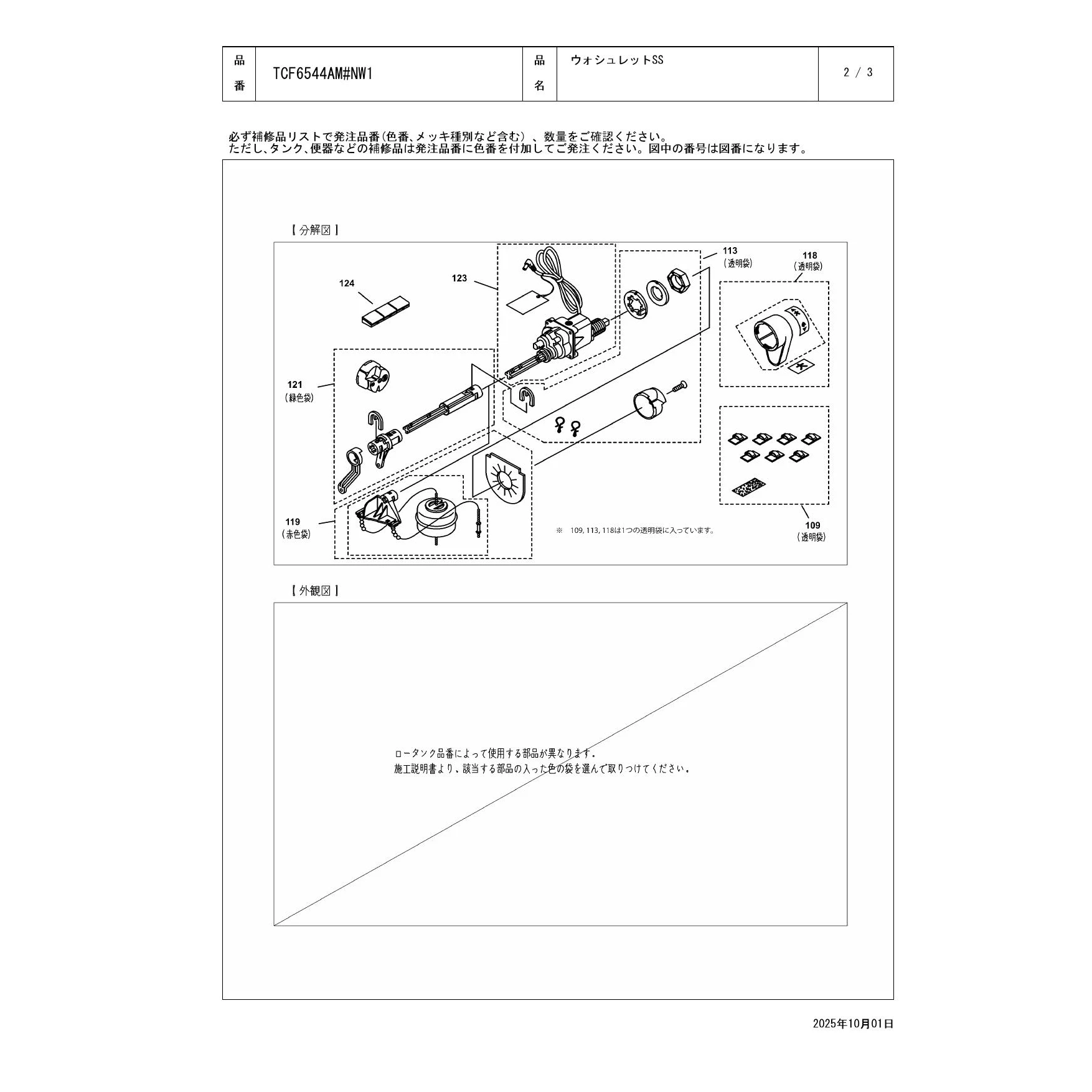 TOTO CS400B+SH400BA+TCF6544AM ピュアレストEX+ウォシュレットSS2A 取扱説明書 商品図面 施工説明書 分解図