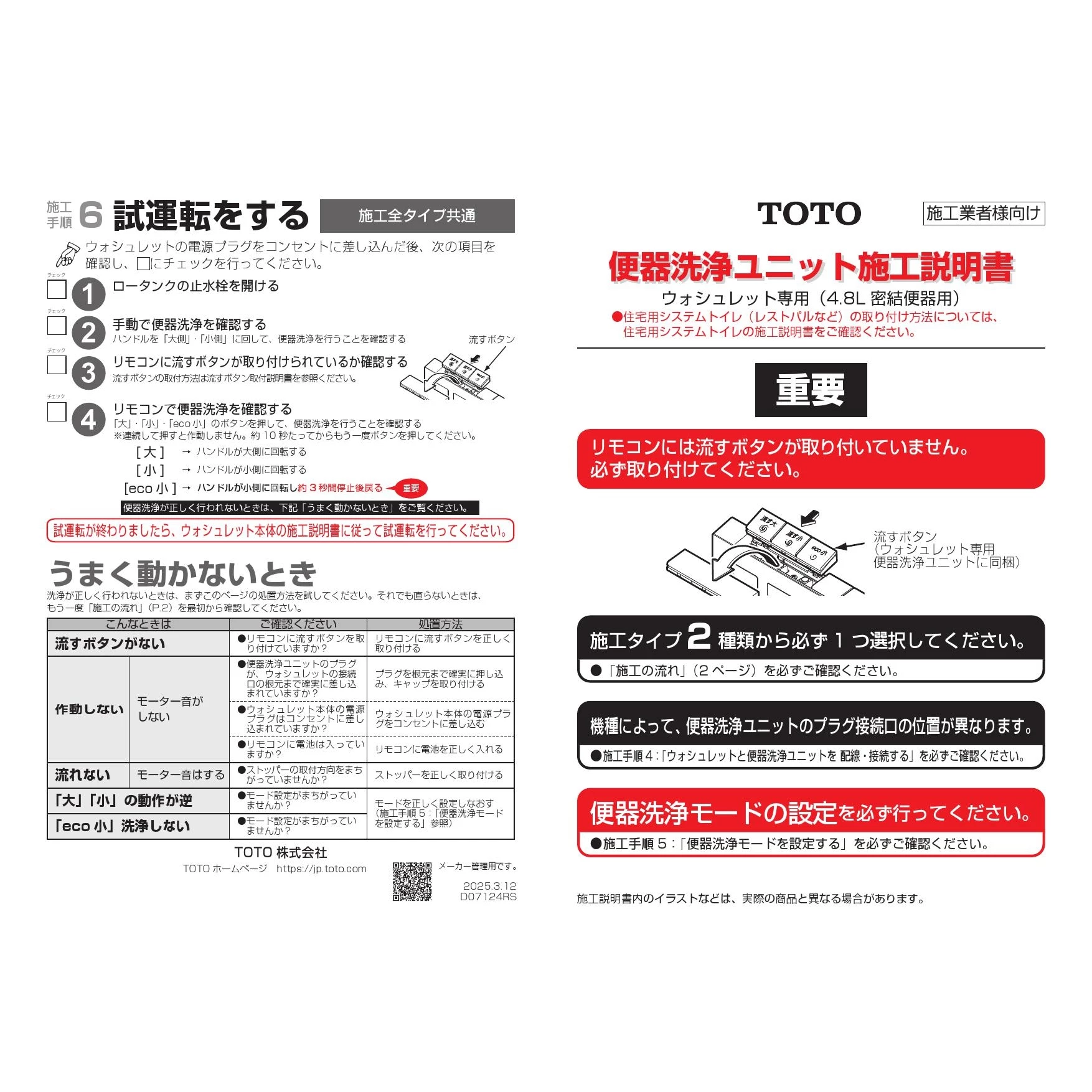 TCF6544AK ウォシュレットSS施工説明書