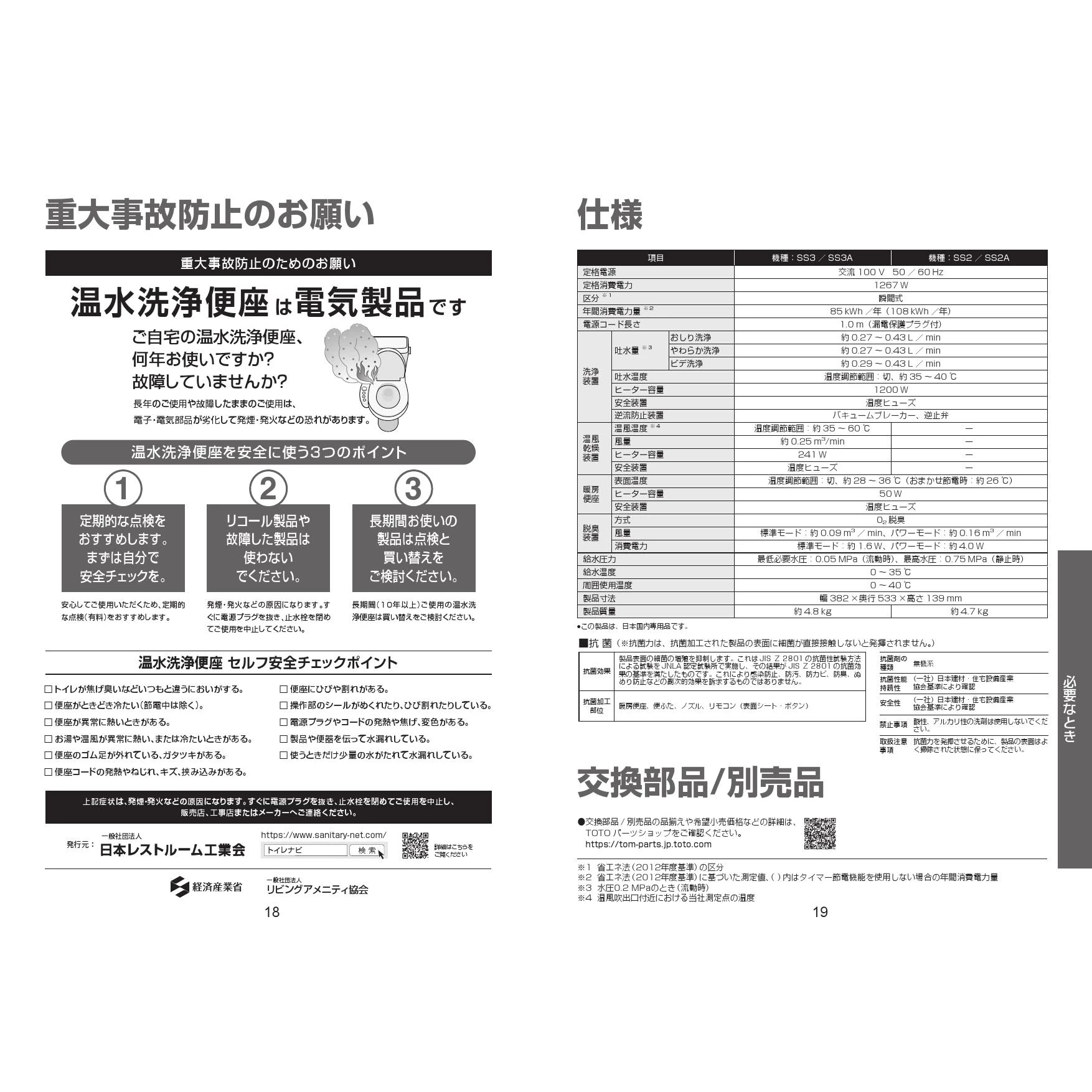 TCF6544AK ウォシュレットSS取扱説明書