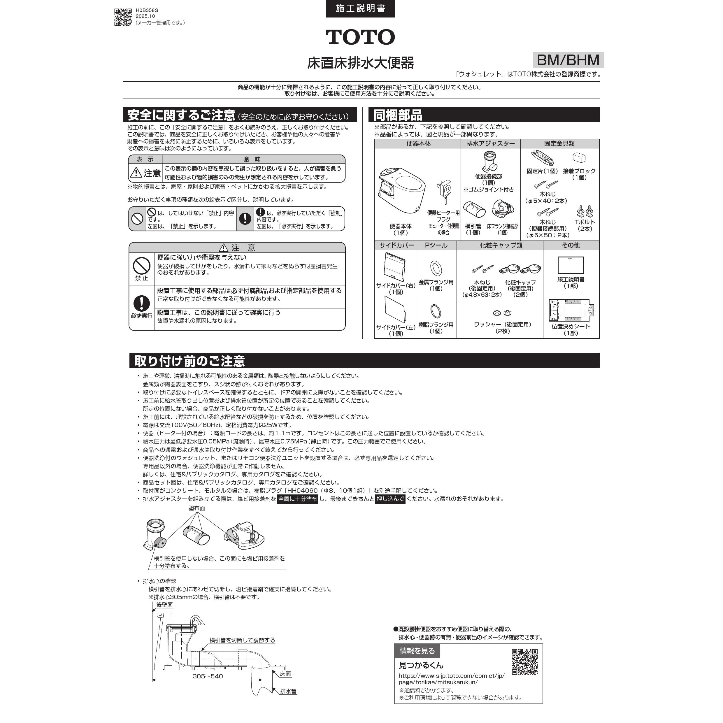 CS400BM 床置床排水大便器ピュアレストEX施工説明書