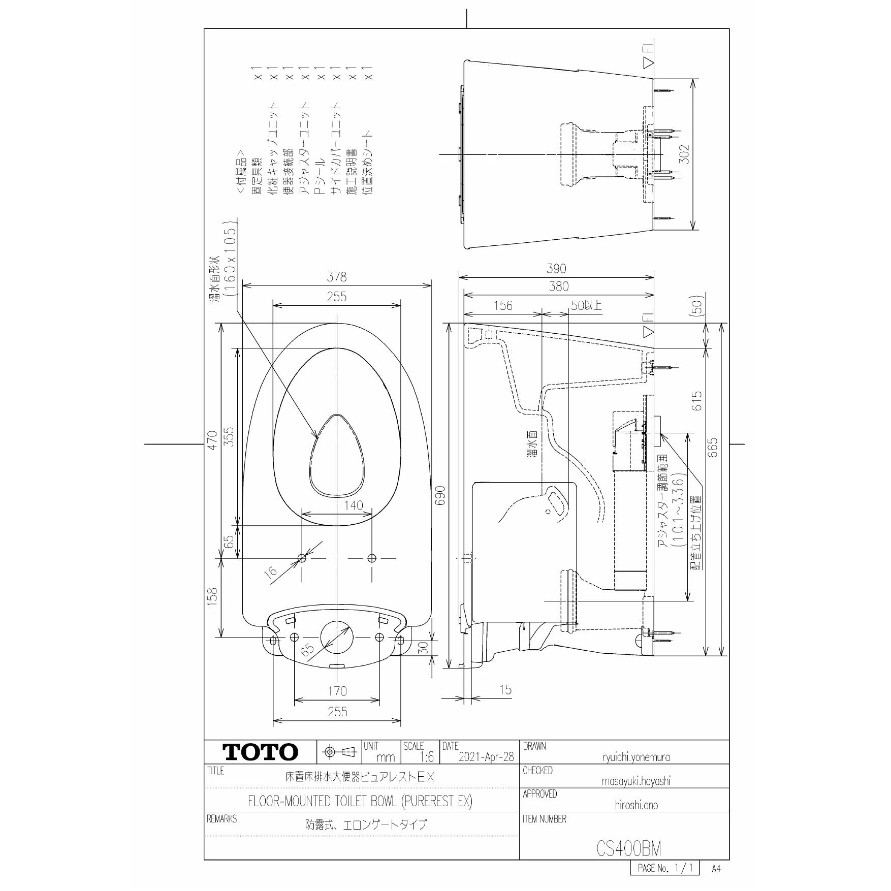 CS400BM 床置床排水大便器ピュアレストEX商品図面