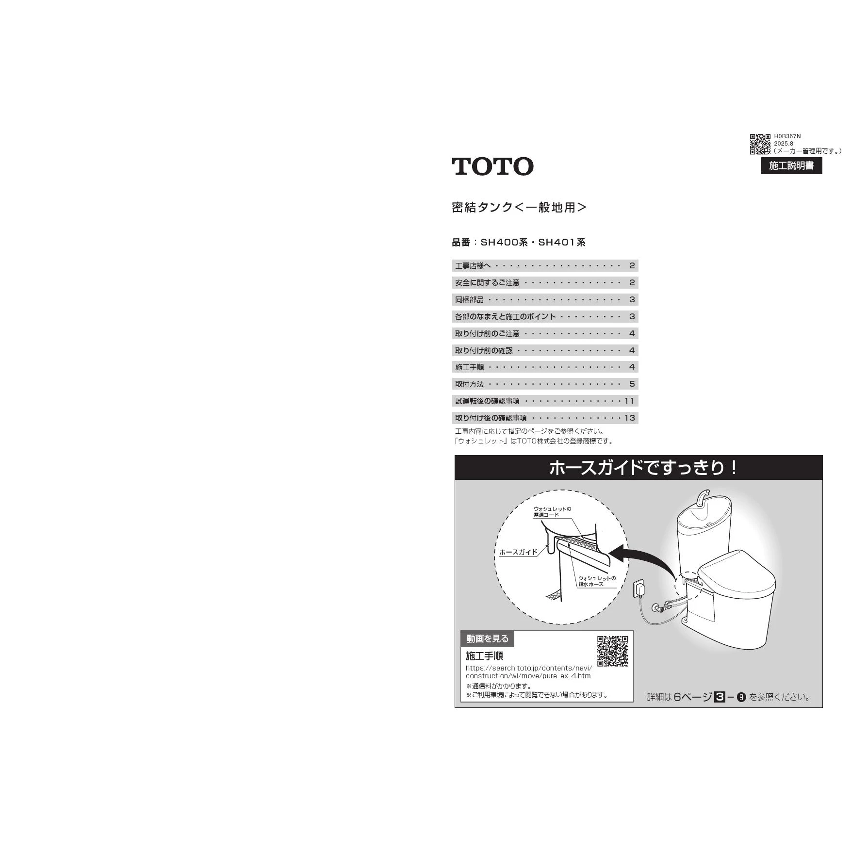 SH400BAK 密結タンク(ピュアレストEX)施工説明書
