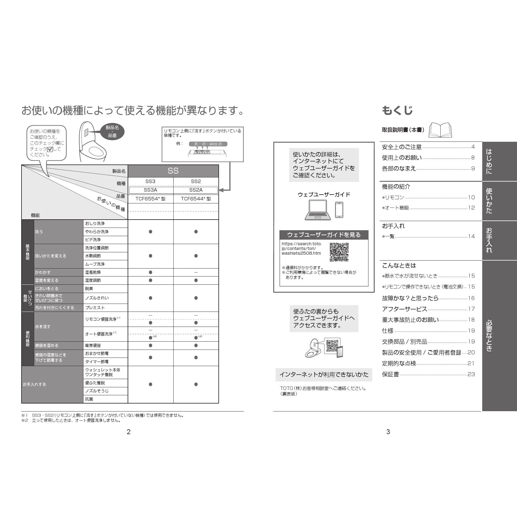 TCF6544AF ウォシュレットSS取扱説明書