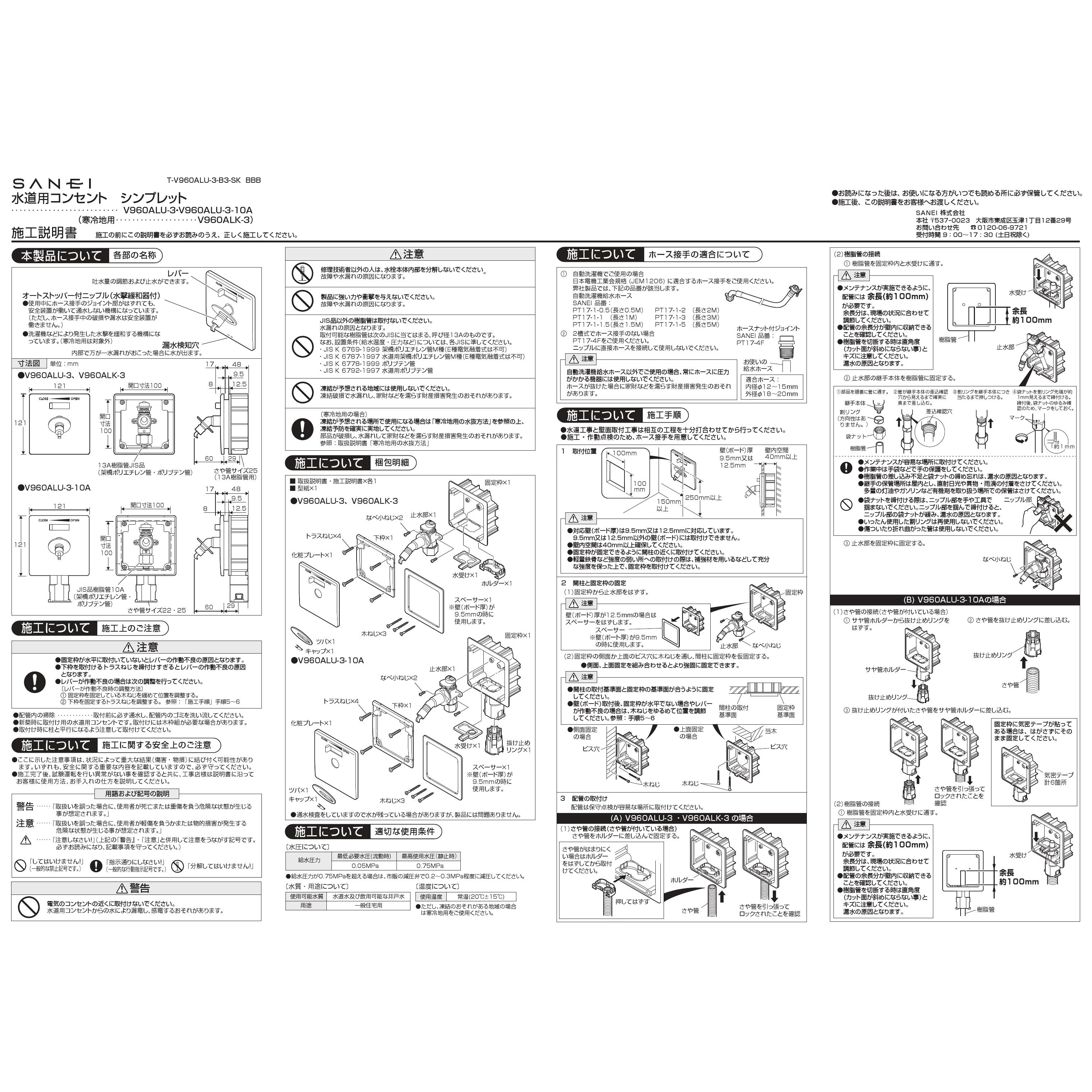 SANEI V960ALU-3 取扱説明書 商品図面