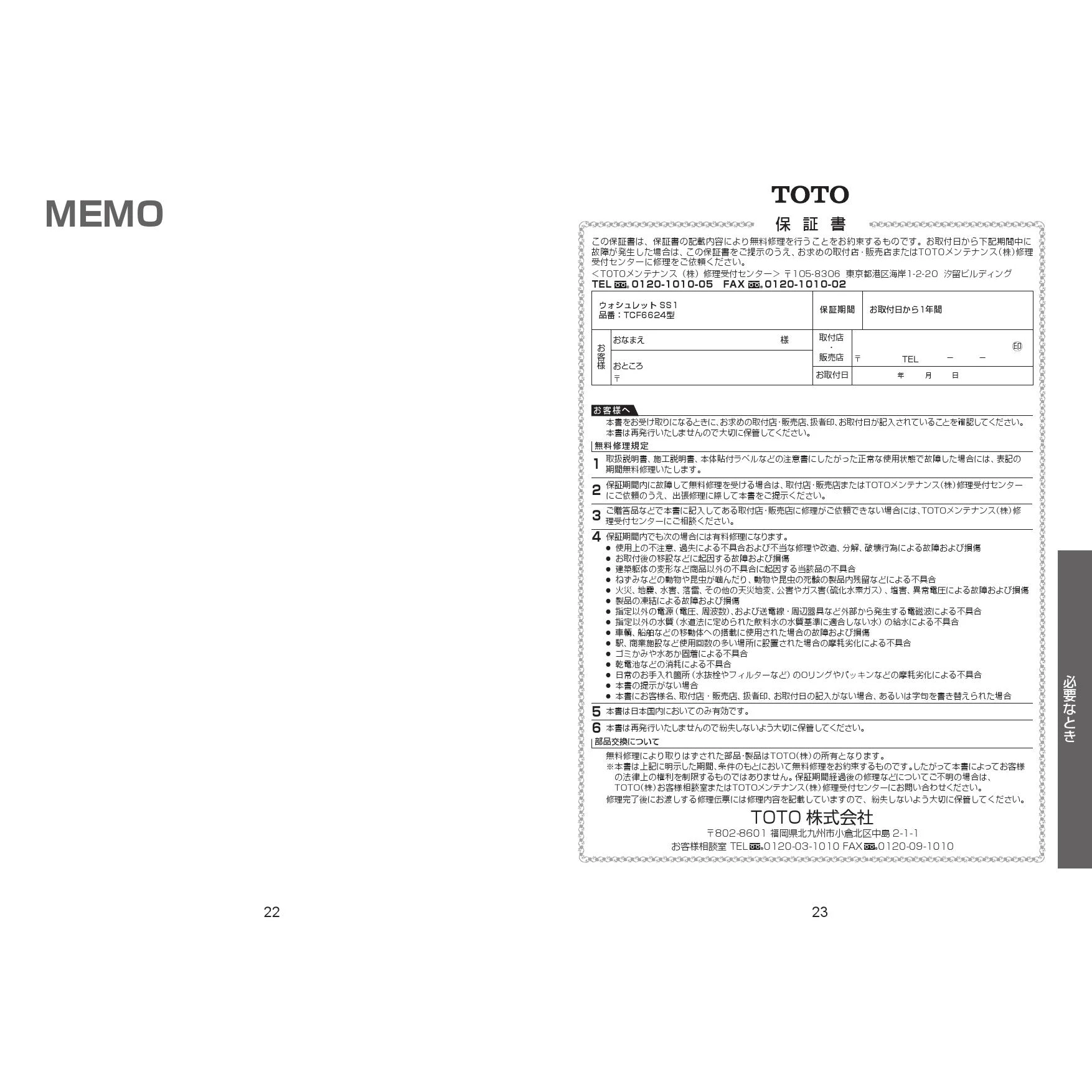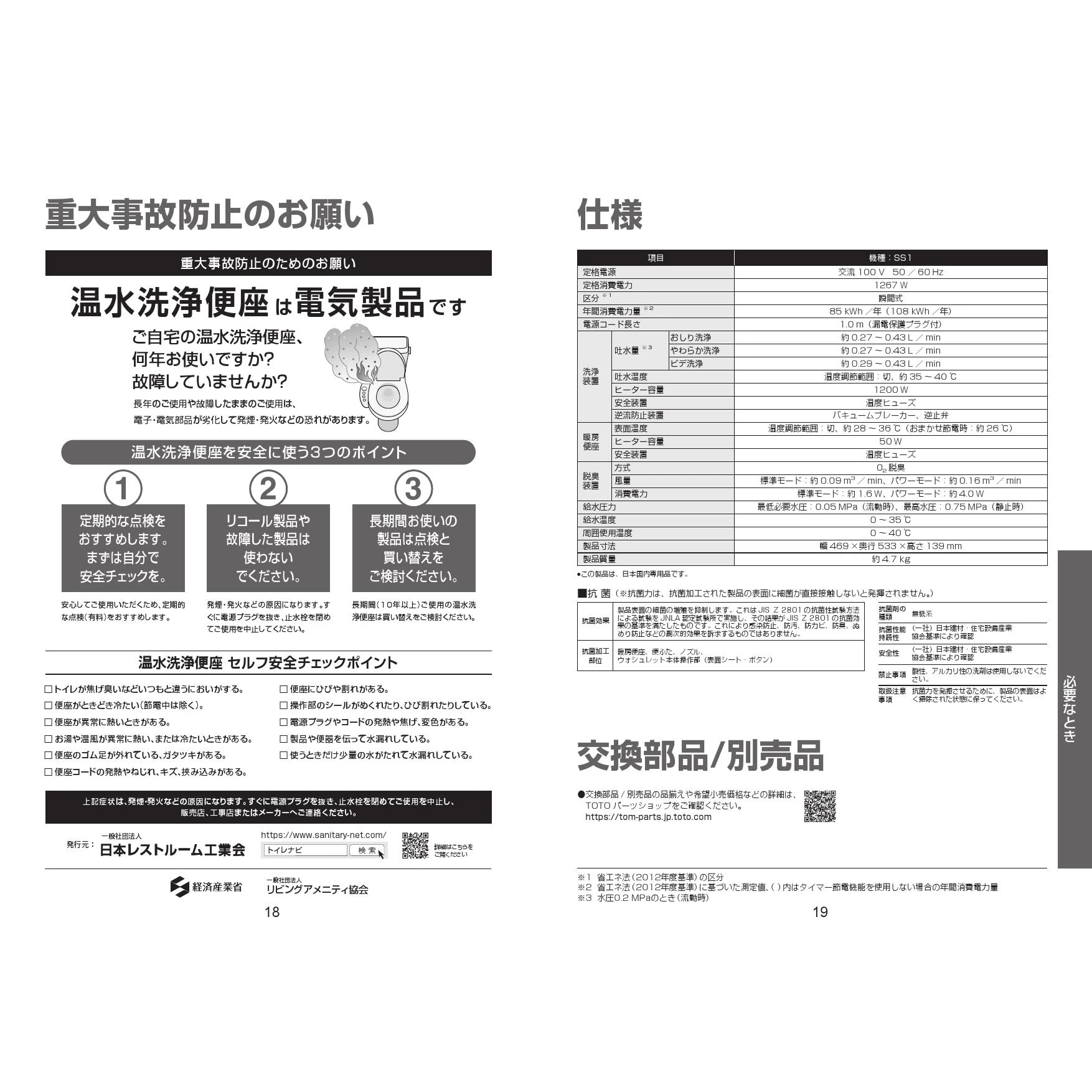TOTO CS400B+SH401BA+TCF6624 ピュアレストEX+ウォシュレットSS1 取扱説明書 商品図面 施工説明書 分解図