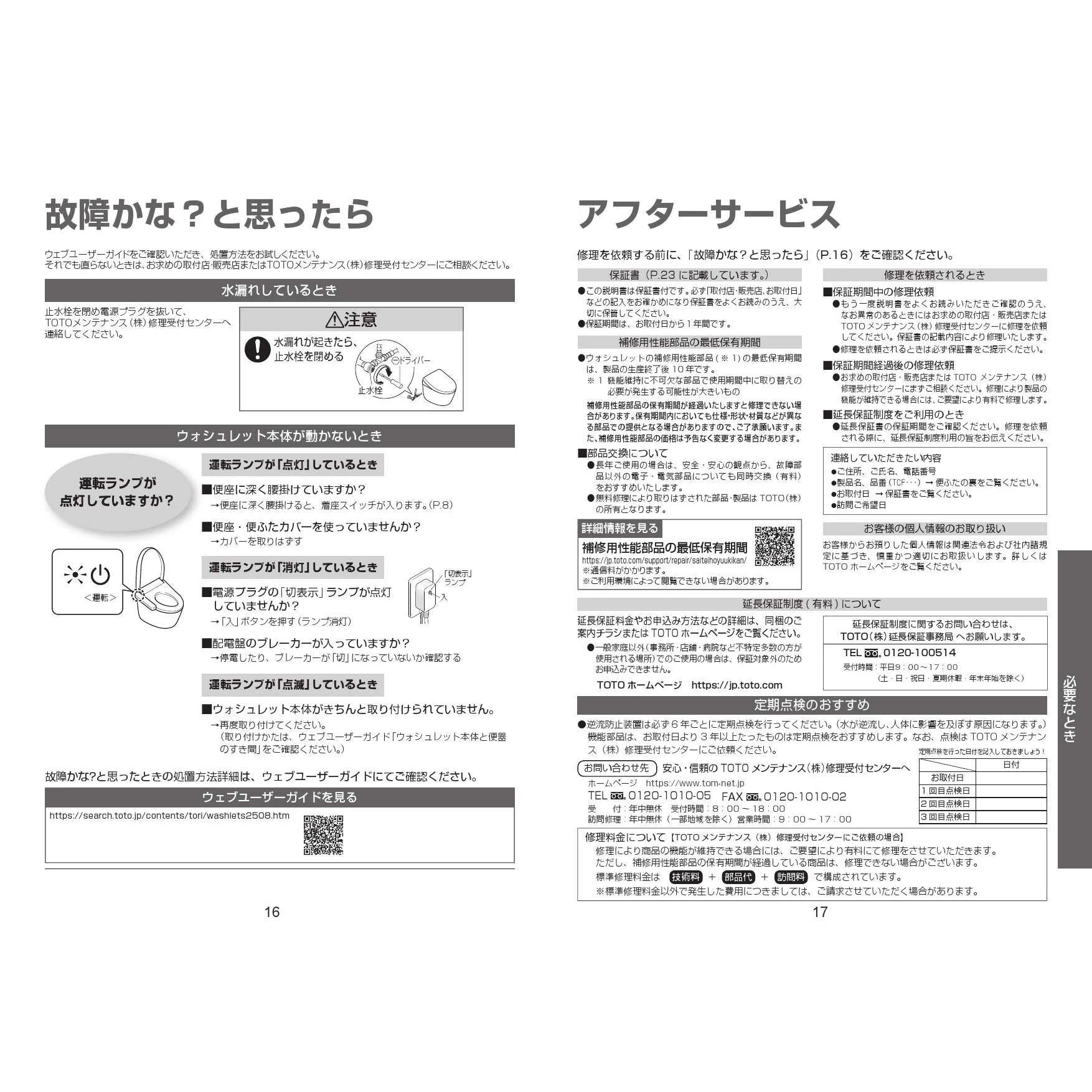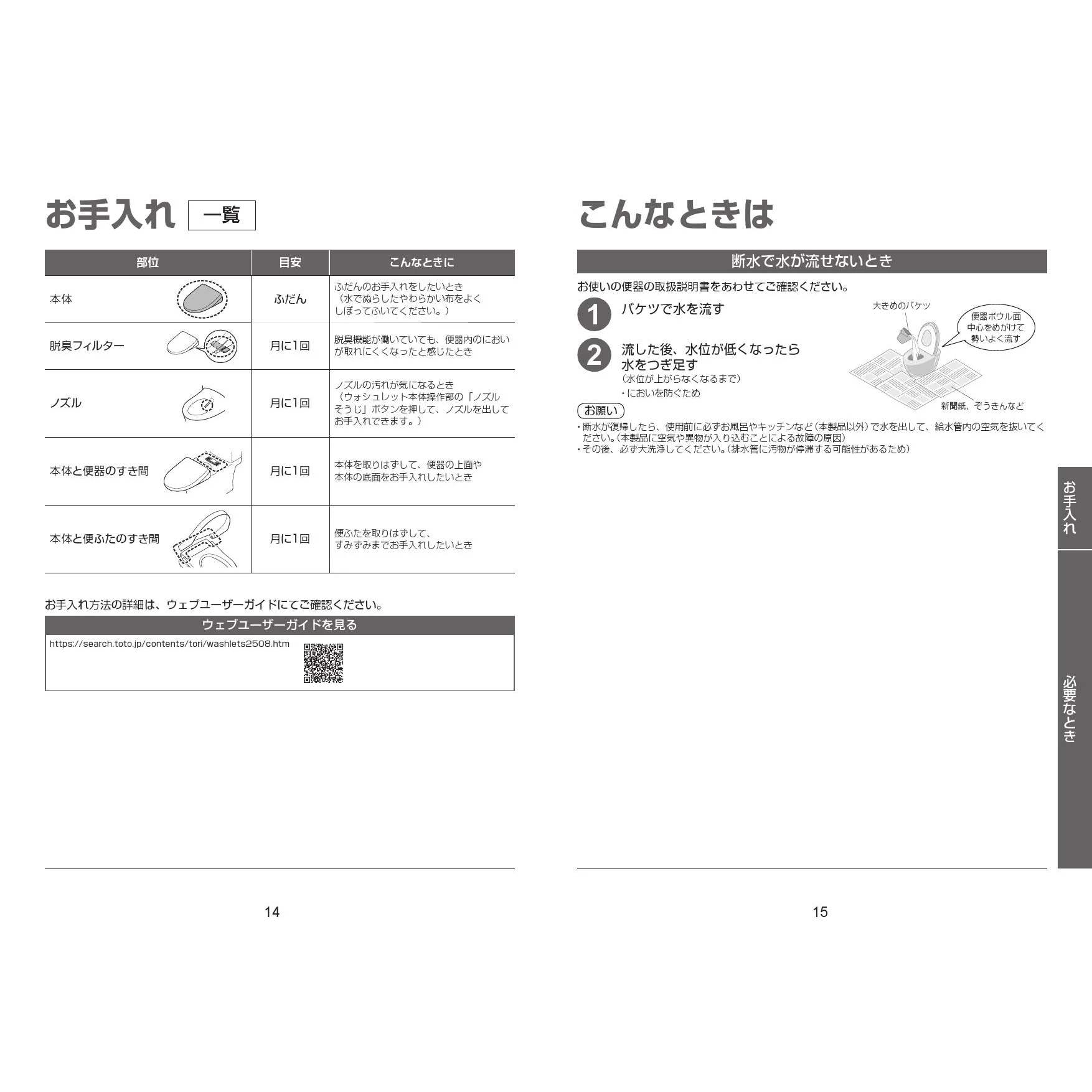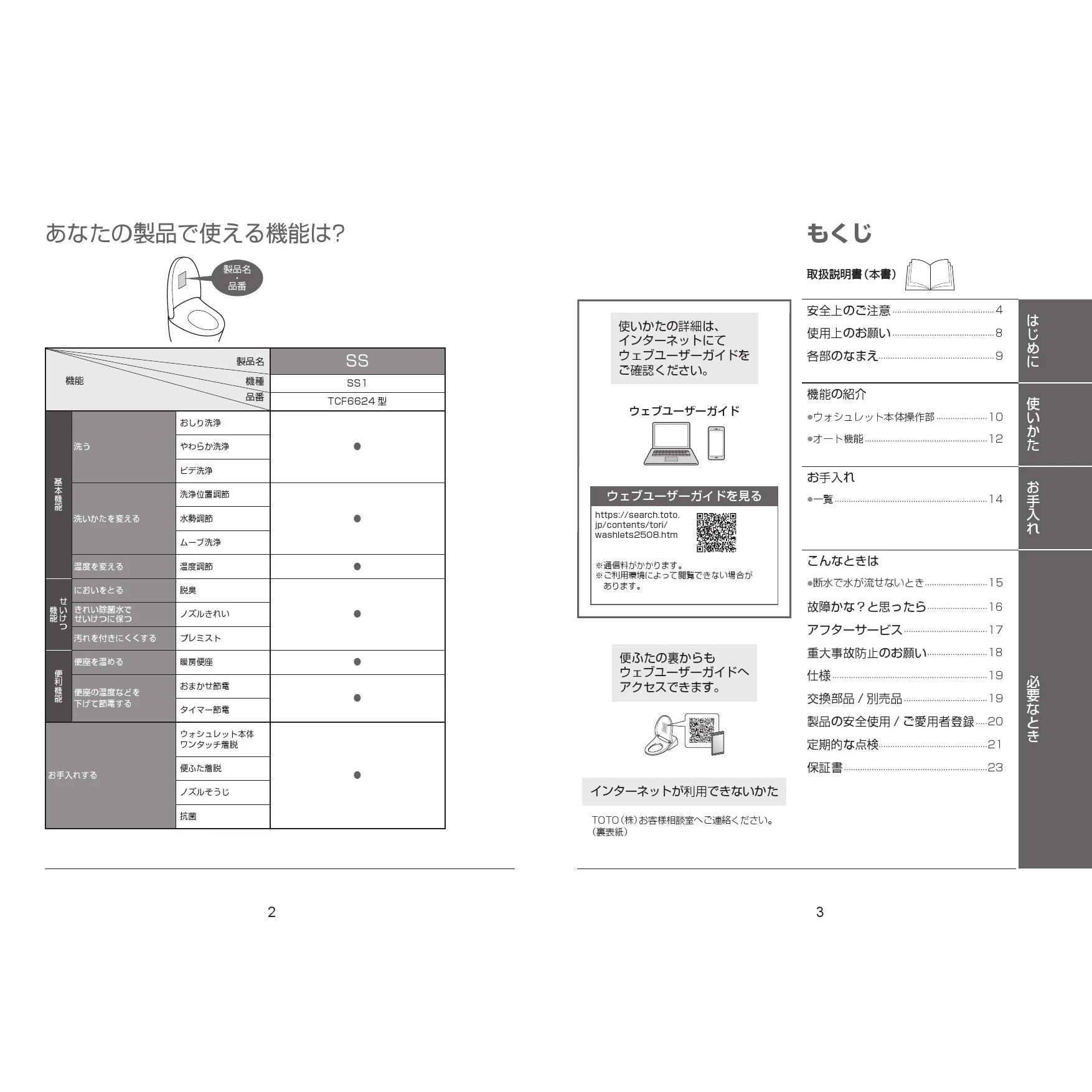 TCF6624 ウォシュレットSS取扱説明書