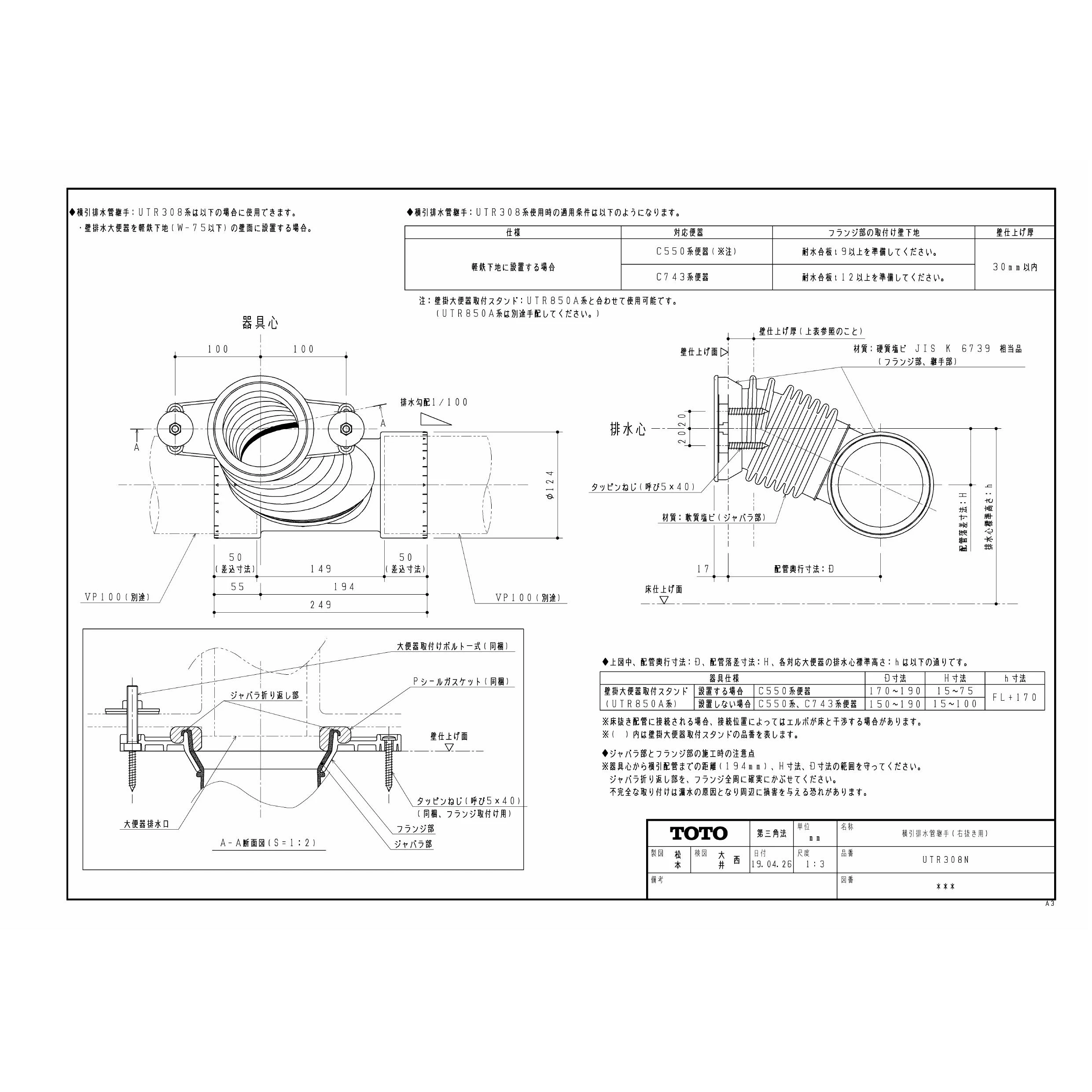 TOTO UTR308N 取扱説明書 商品図面 施工説明書