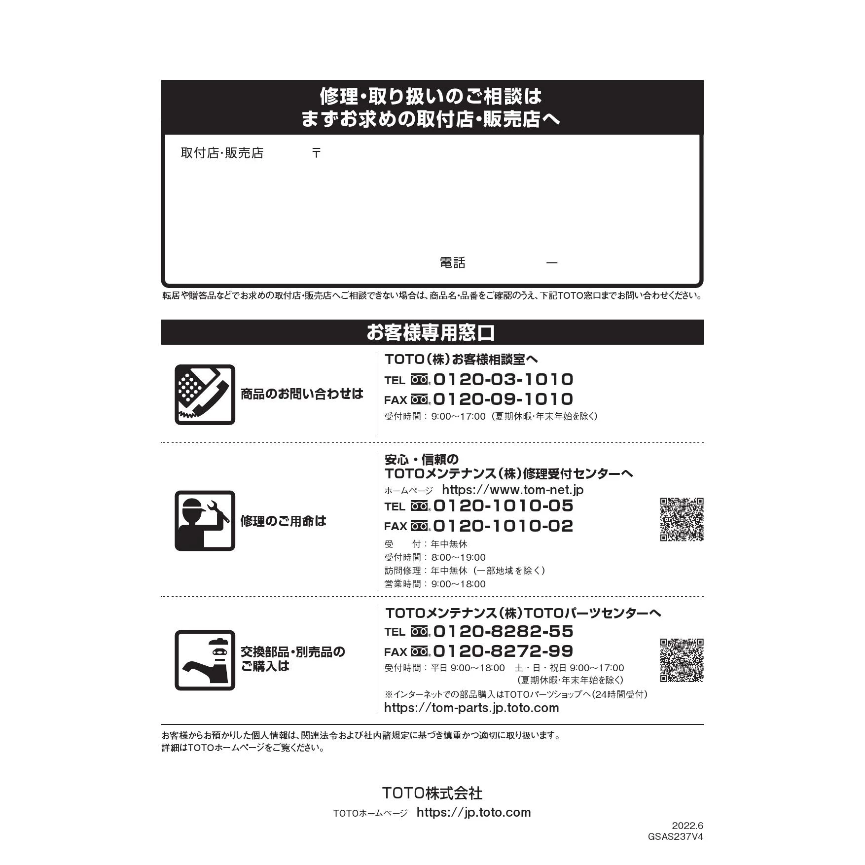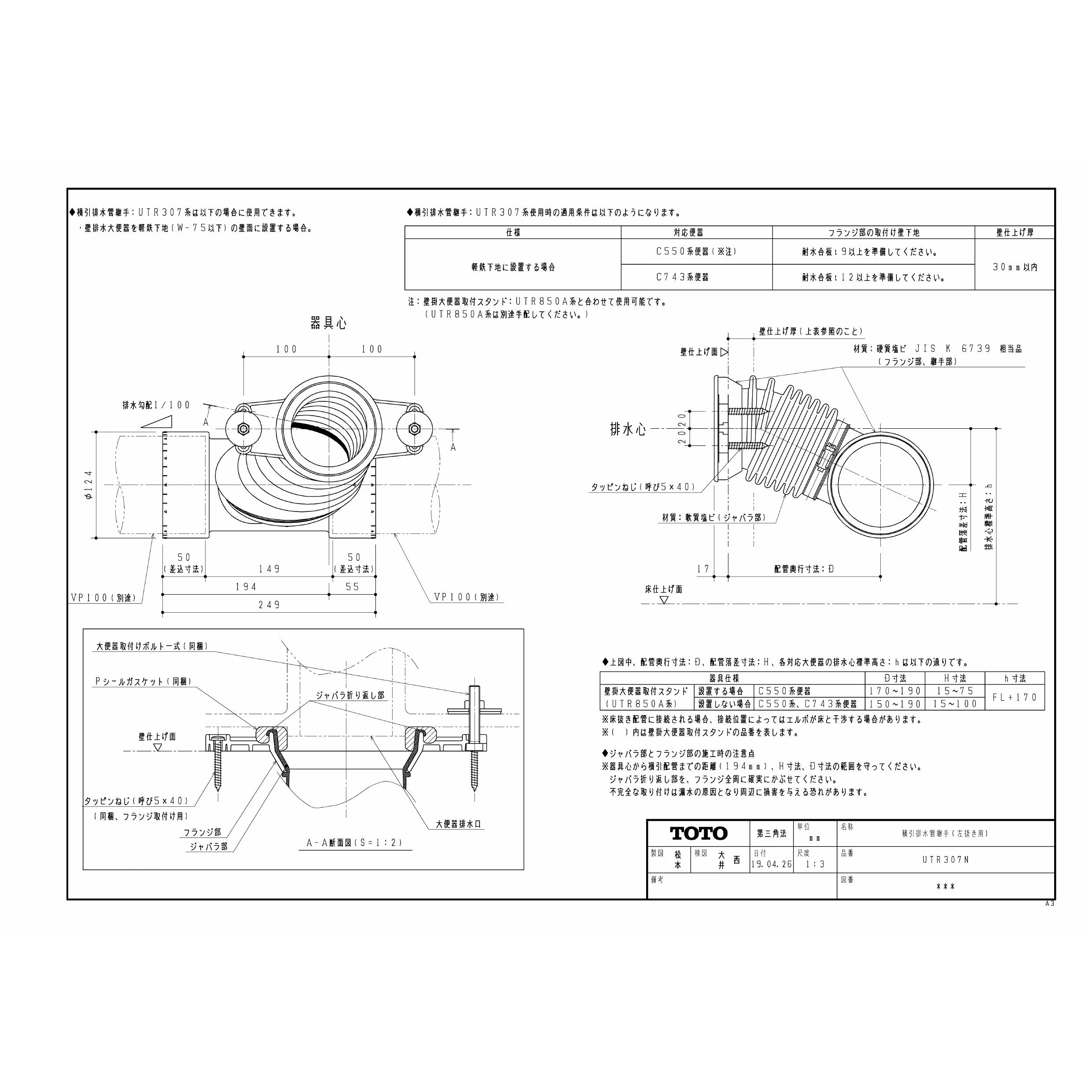 TOTO UTR307N 取扱説明書 商品図面 施工説明書
