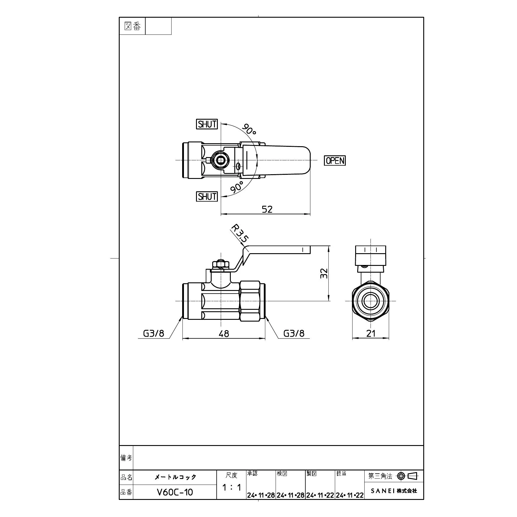 住宅設備のプロストア ダイレクト ホーム SANEI (サンエイ) バルブ ボールバルブ V60C-10 図面・説明書 SANEI V60C-10 商品図面 各種図面のご利用については 免責事項をご確認の上ご利用ください。 V60C-10 SANEI(サンエイ) メートルコック 40.0%OFF 価格 ¥1,848 商品図面 このデータは2025年12月 現在のものです。 商品図面の一括ダウンロード SANEIカスタマーセンター SANEIお問い合わせ SANEIトップページフリーダイヤル:0120-06-9721 受付時間:月~金 9:00~17:00(土日祝、夏季休暇、年末年始を除く) ダイレクトが選ばれる理由 プロストア ダイレクトは、一流メーカー住宅設備機器のトイレ・水栓・給湯器などを卸値価格で販売している会社です。 リフォームに携わる毎日忙しいお客様(一人親方の業者様や工務店様、マンションの管理をしている方)の時間コストを圧縮する(手早くご購入できる)ために、取扱商品35,000点、在庫商品2,300点以上の品揃え!商品仕様などの情報源も支援出来る様なショップを目指しております。 住宅設備機器でお悩みの方は プロストアダイレクトにご相談ください! また、土日、祝祭日、年末年始、夏季期間は翌営業日以降の対応となりますのでご了承ください。 お問い合わせフォーム 平日10時までの注文で在庫商品なら当日発送! SANEI (サンエイ) バルブ ボールバルブ ご利用ガイド キャンセルについて ご注文後のキャンセルは一切承りかねます。品番ご確認の上ご注文ください。 送料について 通常配送料全国一律870円!お買い上げ合計30,000円以上で、通常配送料無料! お支払いについて 代金引換・銀行振込・3Dセキュア対応のクレジットカードがご利用頂けます。 荷受け時の注意事項 荷受け時に必ずお届けの品番とご注文品番に相違がないかをご確認ください。 お届けについて 当店在庫商品の場合、AM10:00までのご注文(ご入金確認)にて当日発送。 返品・交換について 商品の相違や不足が認められる場合、到着後7日以内にご連絡ください。 全商品メーカー保証あり 当店の取り扱い商品は、メーカー正規品の新品につき、メーカー保証が適用されております。 営業日・営業時間について 10:00~18:00(土日祝除く)。時間外のお問合せ・御注文は翌営業日より順次対応。 SSLについて 当店を安心してご利用していただける様、RapidSSLを導入しております。 商品検索 お探しの商品が見つからない場合は、商品名や品番よりお探し頂けます。 検索 住宅設備のプロストア ダイレクト ホーム SANEI (サンエイ) バルブ ボールバルブ V60C-10 図面・説明書