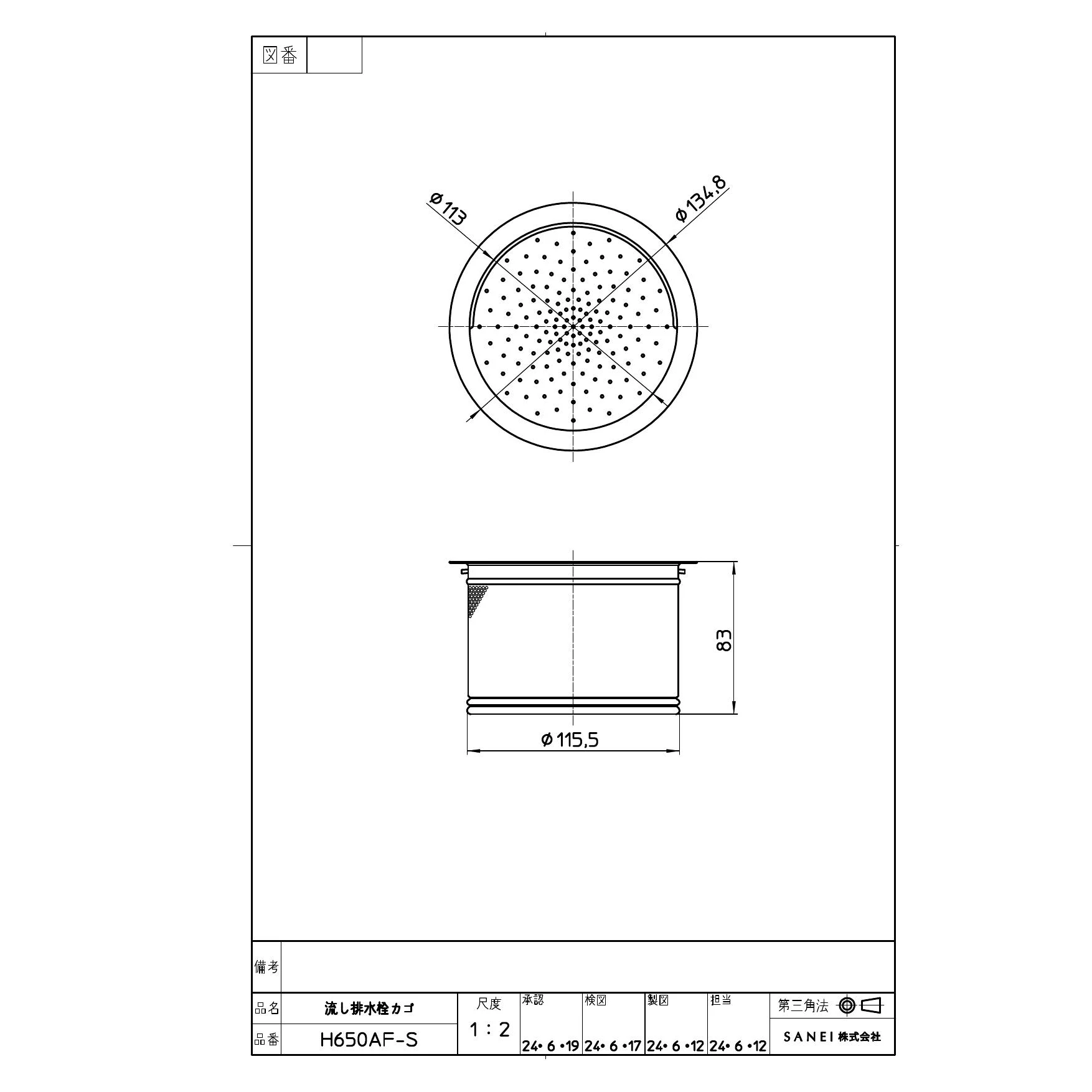 住宅設備のプロストア ダイレクト ホーム SANEI (サンエイ) キッチン 流し排水栓フタ・カゴ H650AF-S 図面・説明書 SANEI H650AF-S 商品図面 各種図面のご利用については 免責事項をご確認の上ご利用ください。 H650AF-S SANEI(サンエイ) 流し排水栓カゴ 45.0%OFF 価格 ¥1,997 商品図面 このデータは2025年12月 現在のものです。 商品図面の一括ダウンロード SANEIカスタマーセンター SANEIお問い合わせ SANEIトップページフリーダイヤル:0120-06-9721 受付時間:月~金 9:00~17:00(土日祝、夏季休暇、年末年始を除く) ダイレクトが選ばれる理由 プロストア ダイレクトは、一流メーカー住宅設備機器のトイレ・水栓・給湯器などを卸値価格で販売している会社です。 リフォームに携わる毎日忙しいお客様(一人親方の業者様や工務店様、マンションの管理をしている方)の時間コストを圧縮する(手早くご購入できる)ために、取扱商品35,000点、在庫商品2,300点以上の品揃え!商品仕様などの情報源も支援出来る様なショップを目指しております。 住宅設備機器でお悩みの方は プロストアダイレクトにご相談ください! また、土日、祝祭日、年末年始、夏季期間は翌営業日以降の対応となりますのでご了承ください。 お問い合わせフォーム 平日10時までの注文で在庫商品なら当日発送! 水栓金具を知る× SANEI (サンエイ) キッチン 流し排水栓フタ・カゴ ご利用ガイド キャンセルについて ご注文後のキャンセルは一切承りかねます。品番ご確認の上ご注文ください。 送料について 通常配送料全国一律870円!お買い上げ合計30,000円以上で、通常配送料無料! お支払いについて 代金引換・銀行振込・3Dセキュア対応のクレジットカードがご利用頂けます。 荷受け時の注意事項 荷受け時に必ずお届けの品番とご注文品番に相違がないかをご確認ください。 お届けについて 当店在庫商品の場合、AM10:00までのご注文(ご入金確認)にて当日発送。 返品・交換について 商品の相違や不足が認められる場合、到着後7日以内にご連絡ください。 全商品メーカー保証あり 当店の取り扱い商品は、メーカー正規品の新品につき、メーカー保証が適用されております。 営業日・営業時間について 10:00~18:00(土日祝除く)。時間外のお問合せ・御注文は翌営業日より順次対応。 SSLについて 当店を安心してご利用していただける様、RapidSSLを導入しております。 商品検索 お探しの商品が見つからない場合は、商品名や品番よりお探し頂けます。 検索 住宅設備のプロストア ダイレクト ホーム SANEI (サンエイ) キッチン 流し排水栓フタ・カゴ H650AF-S 図面・説明書