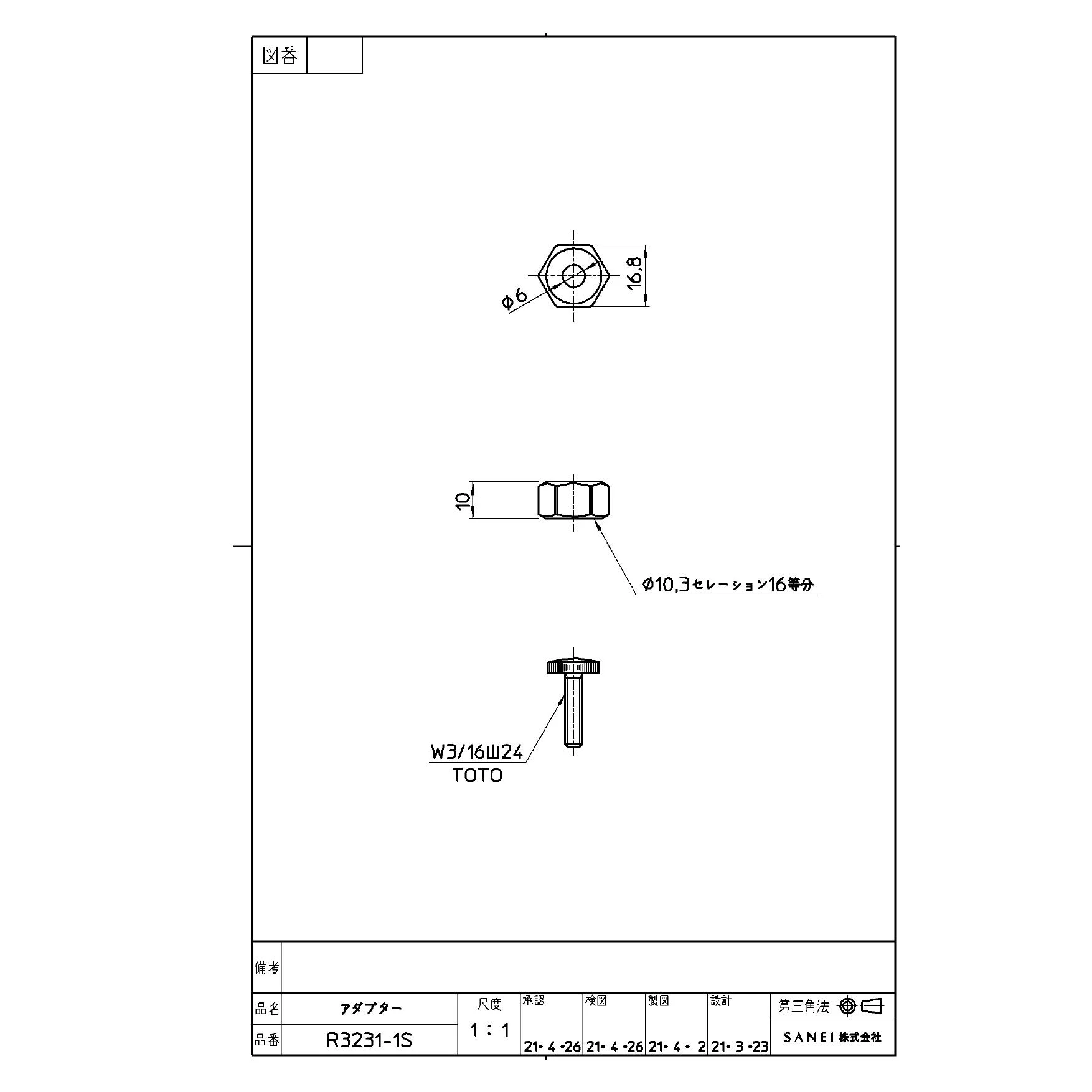 住宅設備のプロストア ダイレクト ホーム SANEI (サンエイ) 水栓部品 ハンドル・レバー部品 PR3231-1S 図面・説明書 SANEI PR3231-1S 商品図面 各種図面のご利用については 免責事項をご確認の上ご利用ください。 PR3231-1S SANEI(サンエイ) アダプター 35.0%OFF 価格 ¥701 商品図面 このデータは2025年12月 現在のものです。 商品図面の一括ダウンロード SANEIカスタマーセンター SANEIお問い合わせ SANEIトップページフリーダイヤル:0120-06-9721 受付時間:月~金 9:00~17:00(土日祝、夏季休暇、年末年始を除く) ダイレクトが選ばれる理由 プロストア ダイレクトは、一流メーカー住宅設備機器のトイレ・水栓・給湯器などを卸値価格で販売している会社です。 リフォームに携わる毎日忙しいお客様(一人親方の業者様や工務店様、マンションの管理をしている方)の時間コストを圧縮する(手早くご購入できる)ために、取扱商品35,000点、在庫商品2,300点以上の品揃え!商品仕様などの情報源も支援出来る様なショップを目指しております。 住宅設備機器でお悩みの方は プロストアダイレクトにご相談ください! また、土日、祝祭日、年末年始、夏季期間は翌営業日以降の対応となりますのでご了承ください。 お問い合わせフォーム 平日10時までの注文で在庫商品なら当日発送! 水栓金具を知る× SANEI (サンエイ) 水栓部品 ハンドル・レバー部品 ご利用ガイド キャンセルについて ご注文後のキャンセルは一切承りかねます。品番ご確認の上ご注文ください。 送料について 通常配送料全国一律870円!お買い上げ合計30,000円以上で、通常配送料無料! お支払いについて 代金引換・銀行振込・3Dセキュア対応のクレジットカードがご利用頂けます。 荷受け時の注意事項 荷受け時に必ずお届けの品番とご注文品番に相違がないかをご確認ください。 お届けについて 当店在庫商品の場合、AM10:00までのご注文(ご入金確認)にて当日発送。 返品・交換について 商品の相違や不足が認められる場合、到着後7日以内にご連絡ください。 全商品メーカー保証あり 当店の取り扱い商品は、メーカー正規品の新品につき、メーカー保証が適用されております。 営業日・営業時間について 10:00~18:00(土日祝除く)。時間外のお問合せ・御注文は翌営業日より順次対応。 SSLについて 当店を安心してご利用していただける様、RapidSSLを導入しております。 商品検索 お探しの商品が見つからない場合は、商品名や品番よりお探し頂けます。 検索 住宅設備のプロストア ダイレクト ホーム SANEI (サンエイ) 水栓部品 ハンドル・レバー部品 PR3231-1S 図面・説明書