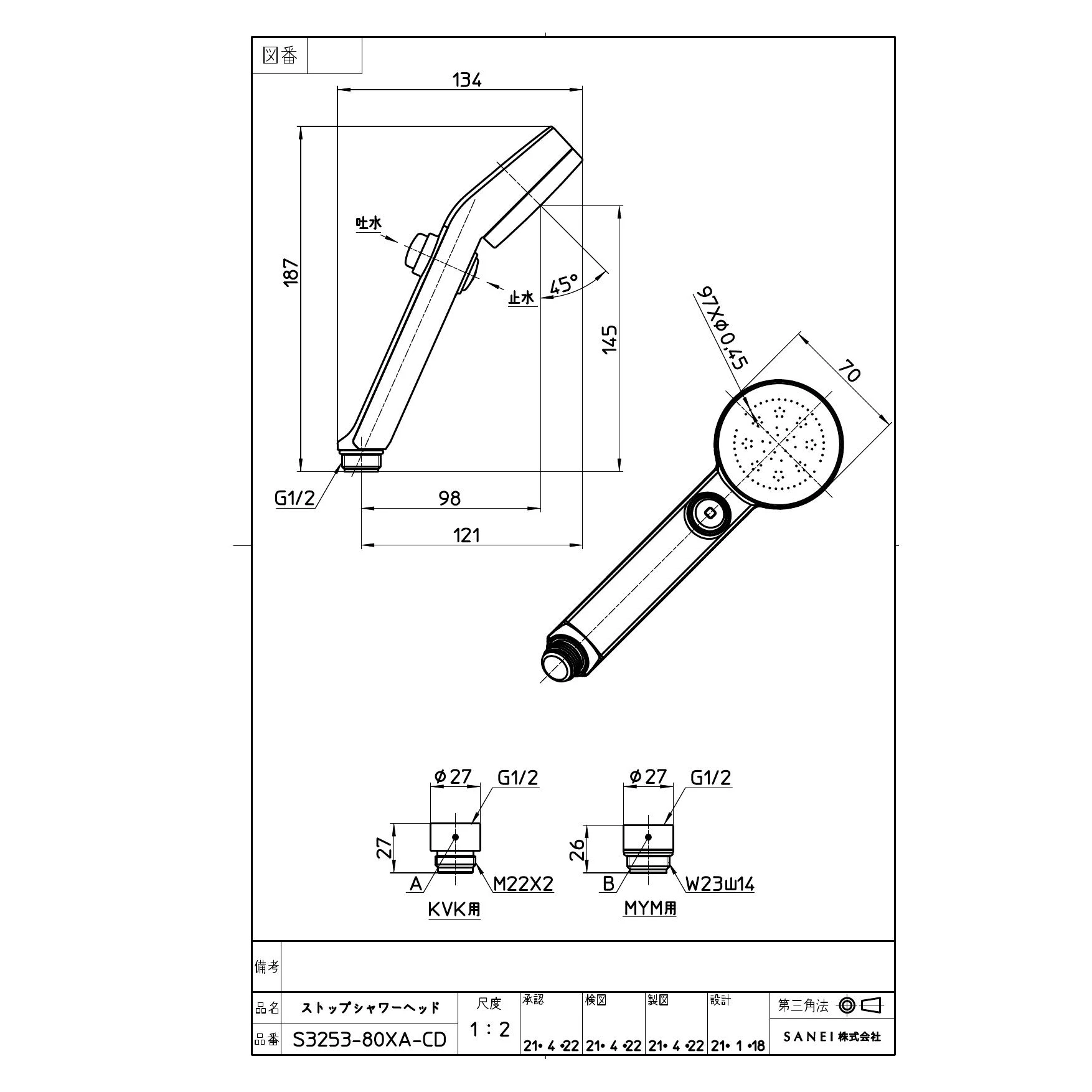住宅設備のプロストア ダイレクト ホーム SANEI (サンエイ) シャワー シャワーヘッド PS3253-80XA-CD 図面・説明書 SANEI PS3253-80XA-CD 商品図面 各種図面のご利用については 免責事項をご確認の上ご利用ください。 PS3253-80XA-CD SANEI(サンエイ) ストップシャワーヘッド 45.0%OFF 価格 ¥3,751 商品図面 このデータは2025年12月 現在のものです。 商品図面の一括ダウンロード SANEIカスタマーセンター SANEIお問い合わせ SANEIトップページフリーダイヤル:0120-06-9721 受付時間:月~金 9:00~17:00(土日祝、夏季休暇、年末年始を除く) ダイレクトが選ばれる理由 プロストア ダイレクトは、一流メーカー住宅設備機器のトイレ・水栓・給湯器などを卸値価格で販売している会社です。 リフォームに携わる毎日忙しいお客様(一人親方の業者様や工務店様、マンションの管理をしている方)の時間コストを圧縮する(手早くご購入できる)ために、取扱商品35,000点、在庫商品2,300点以上の品揃え!商品仕様などの情報源も支援出来る様なショップを目指しております。 住宅設備機器でお悩みの方は プロストアダイレクトにご相談ください! また、土日、祝祭日、年末年始、夏季期間は翌営業日以降の対応となりますのでご了承ください。 お問い合わせフォーム 平日10時までの注文で在庫商品なら当日発送! SANEI (サンエイ) シャワー シャワーヘッド ご利用ガイド キャンセルについて ご注文後のキャンセルは一切承りかねます。品番ご確認の上ご注文ください。 送料について 通常配送料全国一律870円!お買い上げ合計30,000円以上で、通常配送料無料! お支払いについて 代金引換・銀行振込・3Dセキュア対応のクレジットカードがご利用頂けます。 荷受け時の注意事項 荷受け時に必ずお届けの品番とご注文品番に相違がないかをご確認ください。 お届けについて 当店在庫商品の場合、AM10:00までのご注文(ご入金確認)にて当日発送。 返品・交換について 商品の相違や不足が認められる場合、到着後7日以内にご連絡ください。 全商品メーカー保証あり 当店の取り扱い商品は、メーカー正規品の新品につき、メーカー保証が適用されております。 営業日・営業時間について 10:00~18:00(土日祝除く)。時間外のお問合せ・御注文は翌営業日より順次対応。 SSLについて 当店を安心してご利用していただける様、RapidSSLを導入しております。 商品検索 お探しの商品が見つからない場合は、商品名や品番よりお探し頂けます。 検索 住宅設備のプロストア ダイレクト ホーム SANEI (サンエイ) シャワー シャワーヘッド PS3253-80XA-CD 図面・説明書