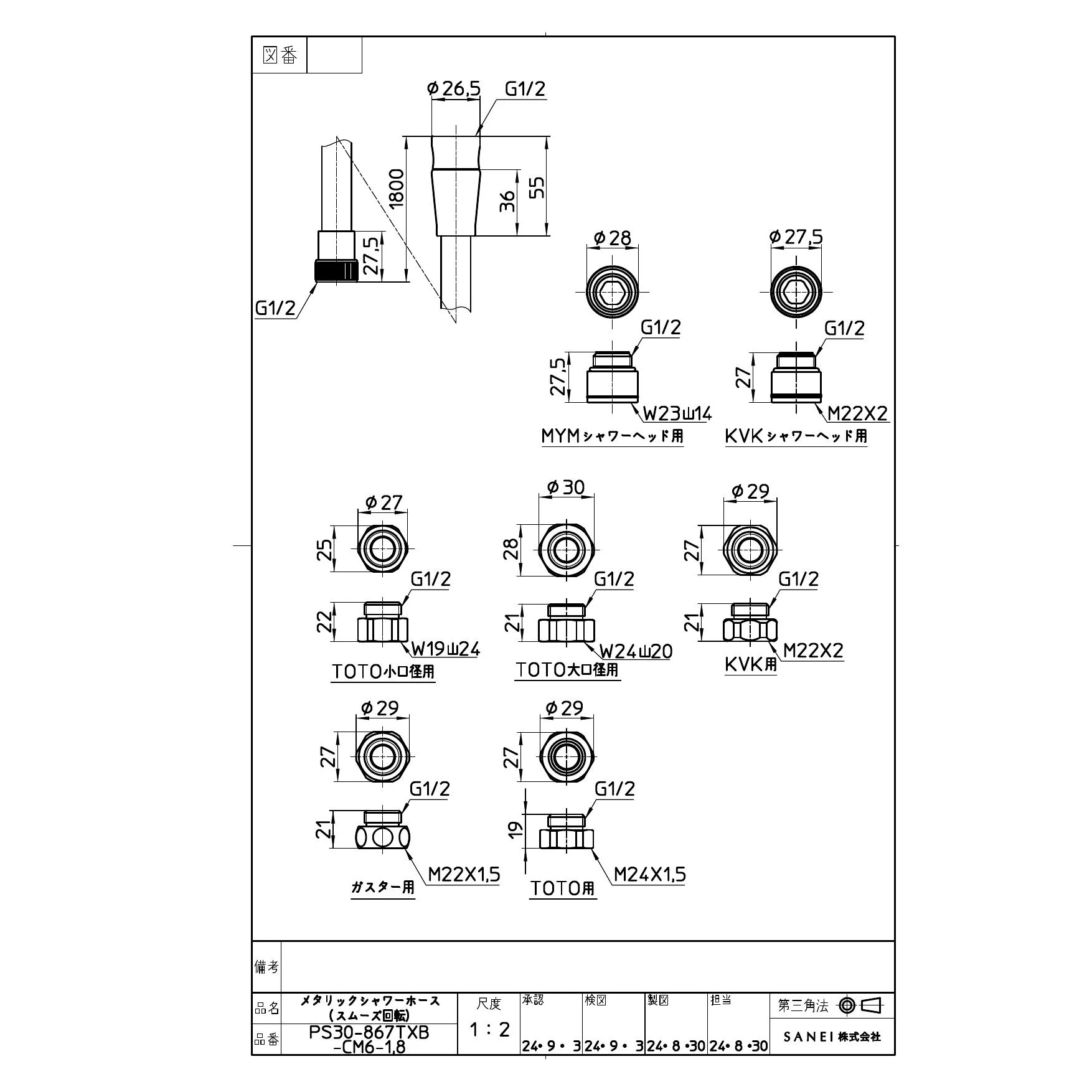 住宅設備のプロストア ダイレクト ホーム SANEI (サンエイ) シャワー シャワー用品 PS30-867TXB-CM6-1.8 図面・説明書 SANEI PS30-867TXB-CM6-1.8 商品図面 各種図面のご利用については 免責事項をご確認の上ご利用ください。 PS30-867TXB-CM6-1.8 SANEI(サンエイ) メタリックシャワーホース(スムーズ回転) 32.0%OFF 価格 ¥5,984 商品図面 このデータは2025年12月 現在のものです。 商品図面の一括ダウンロード SANEIカスタマーセンター SANEIお問い合わせ SANEIトップページフリーダイヤル:0120-06-9721 受付時間:月~金 9:00~17:00(土日祝、夏季休暇、年末年始を除く) ダイレクトが選ばれる理由 プロストア ダイレクトは、一流メーカー住宅設備機器のトイレ・水栓・給湯器などを卸値価格で販売している会社です。 リフォームに携わる毎日忙しいお客様(一人親方の業者様や工務店様、マンションの管理をしている方)の時間コストを圧縮する(手早くご購入できる)ために、取扱商品35,000点、在庫商品2,300点以上の品揃え!商品仕様などの情報源も支援出来る様なショップを目指しております。 住宅設備機器でお悩みの方は プロストアダイレクトにご相談ください! また、土日、祝祭日、年末年始、夏季期間は翌営業日以降の対応となりますのでご了承ください。 お問い合わせフォーム 平日10時までの注文で在庫商品なら当日発送! SANEI (サンエイ) シャワー シャワー用品 ご利用ガイド キャンセルについて ご注文後のキャンセルは一切承りかねます。品番ご確認の上ご注文ください。 送料について 通常配送料全国一律870円!お買い上げ合計30,000円以上で、通常配送料無料! お支払いについて 代金引換・銀行振込・3Dセキュア対応のクレジットカードがご利用頂けます。 荷受け時の注意事項 荷受け時に必ずお届けの品番とご注文品番に相違がないかをご確認ください。 お届けについて 当店在庫商品の場合、AM10:00までのご注文(ご入金確認)にて当日発送。 返品・交換について 商品の相違や不足が認められる場合、到着後7日以内にご連絡ください。 全商品メーカー保証あり 当店の取り扱い商品は、メーカー正規品の新品につき、メーカー保証が適用されております。 営業日・営業時間について 10:00~18:00(土日祝除く)。時間外のお問合せ・御注文は翌営業日より順次対応。 SSLについて 当店を安心してご利用していただける様、RapidSSLを導入しております。 商品検索 お探しの商品が見つからない場合は、商品名や品番よりお探し頂けます。 検索 住宅設備のプロストア ダイレクト ホーム SANEI (サンエイ) シャワー シャワー用品 PS30-867TXB-CM6-1.8 図面・説明書