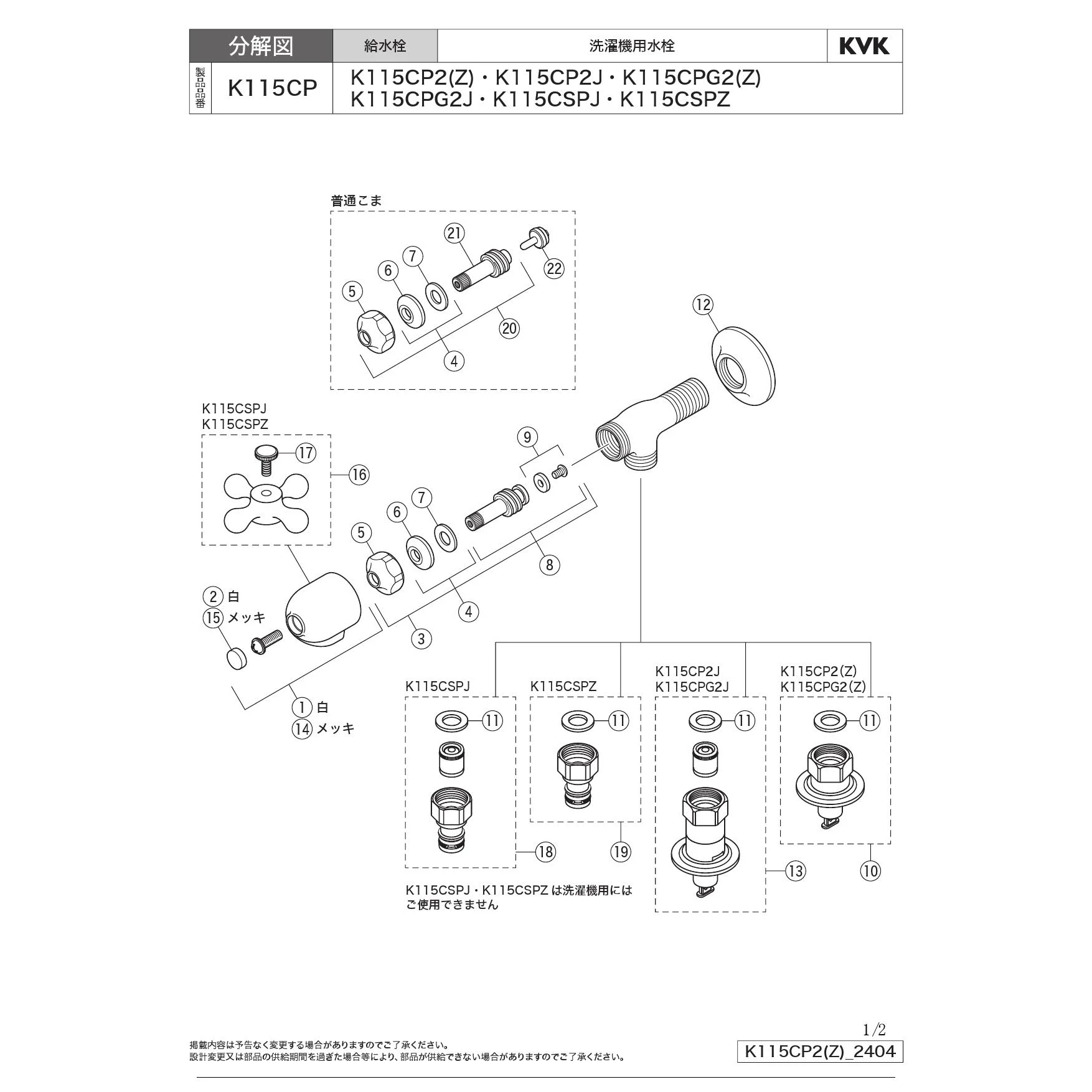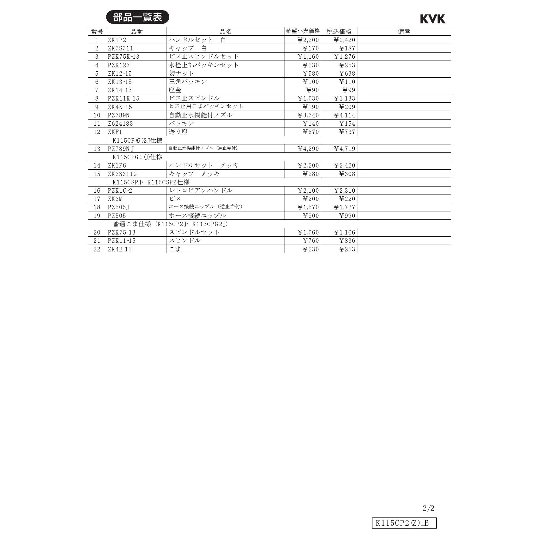 KVK K115CSPJ 商品図面 分解図