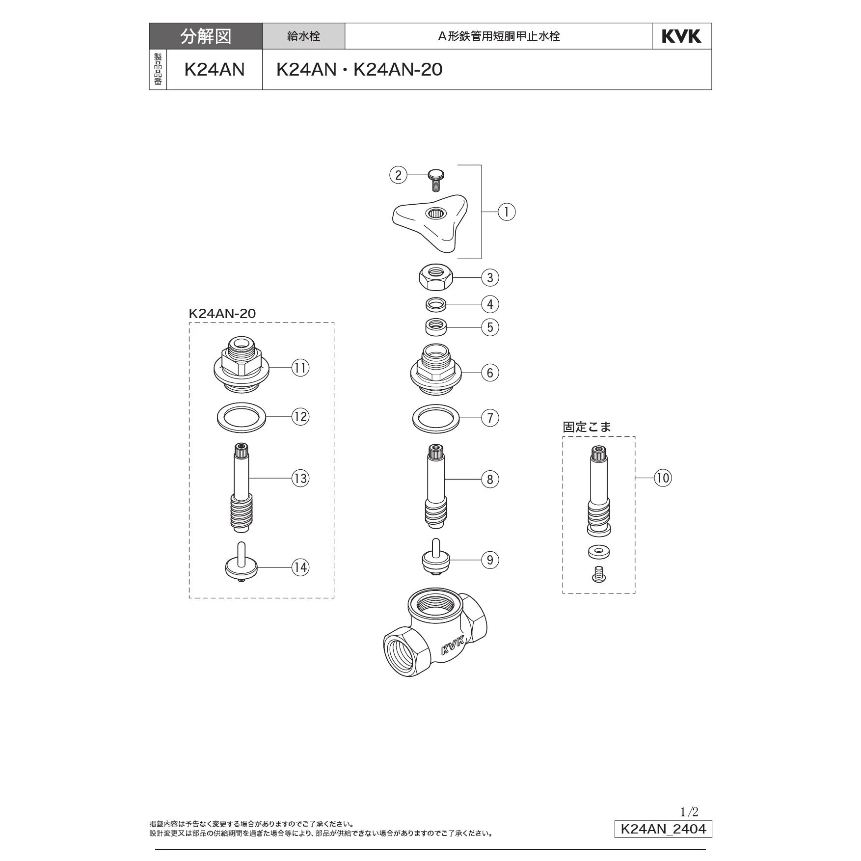 KVK K24AN 商品図面 分解図