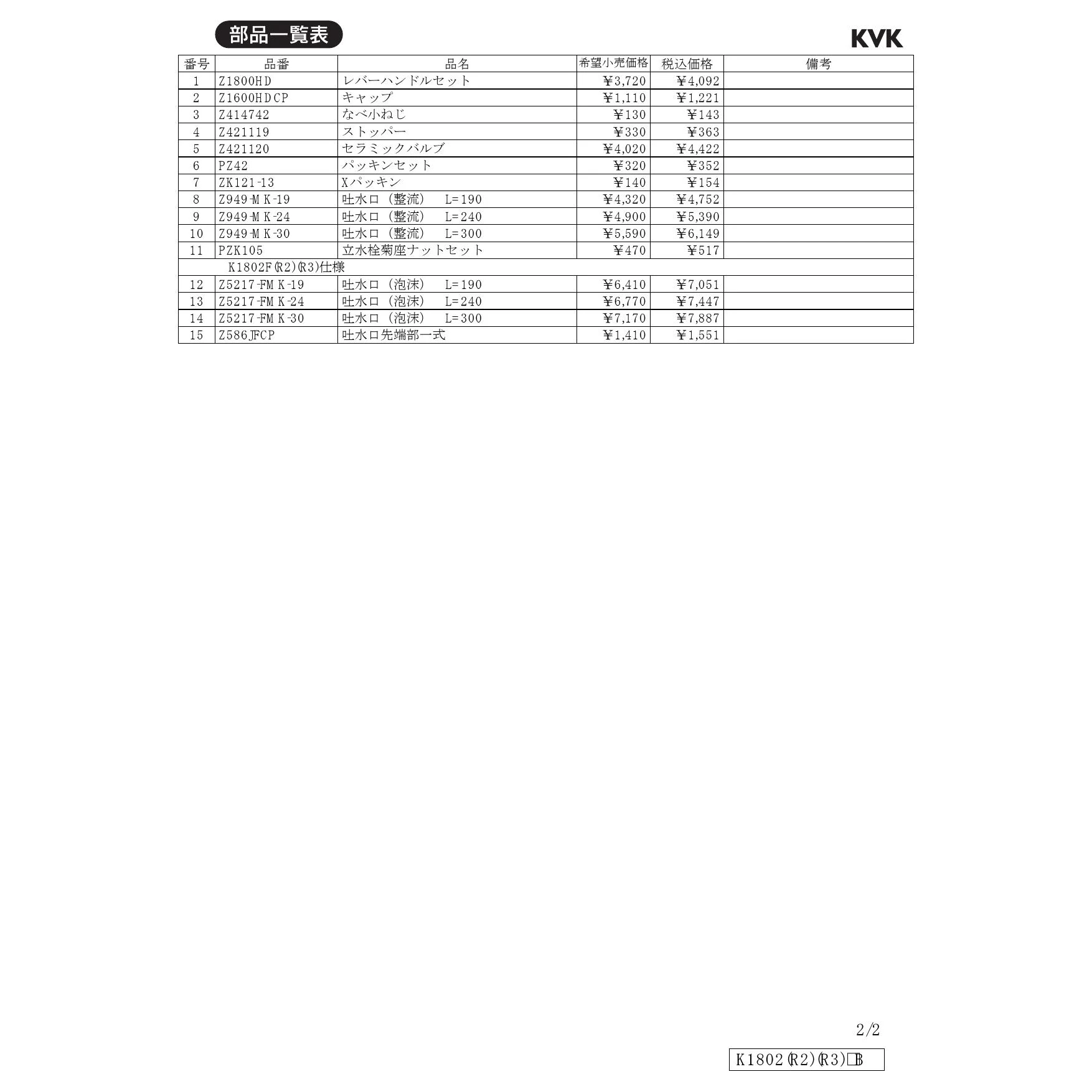 KVK K1802R2 取扱説明書 商品図面 分解図