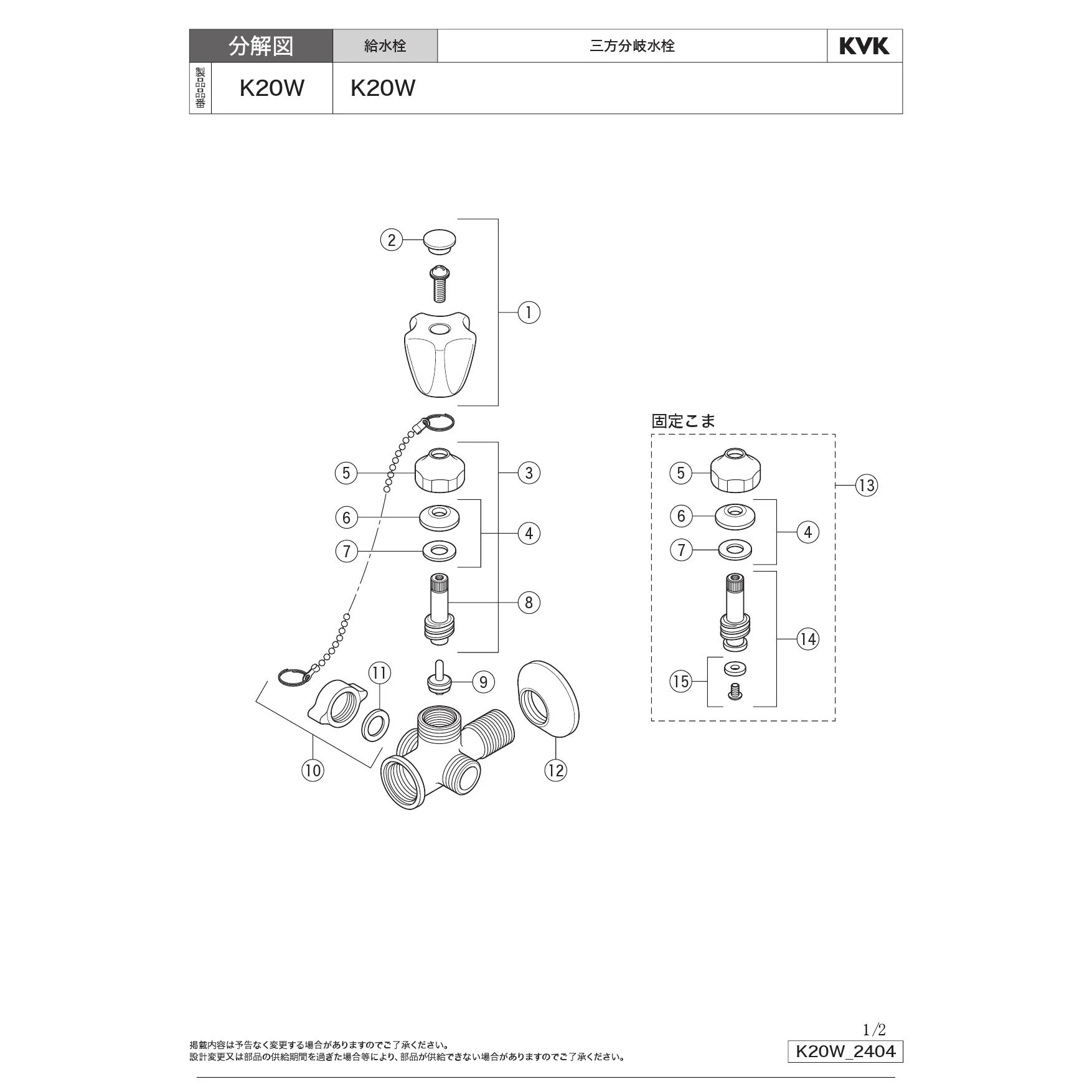 KVK K20W 商品図面 分解図