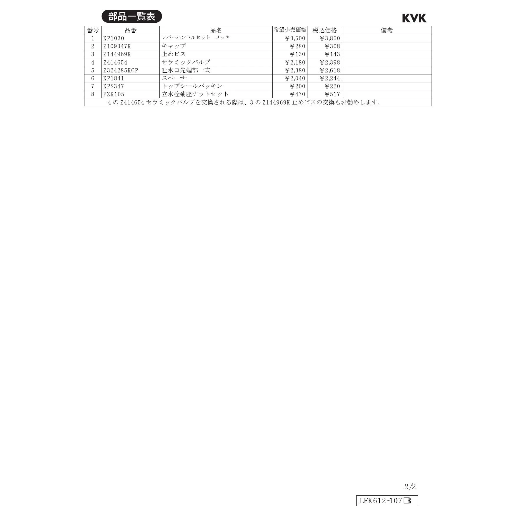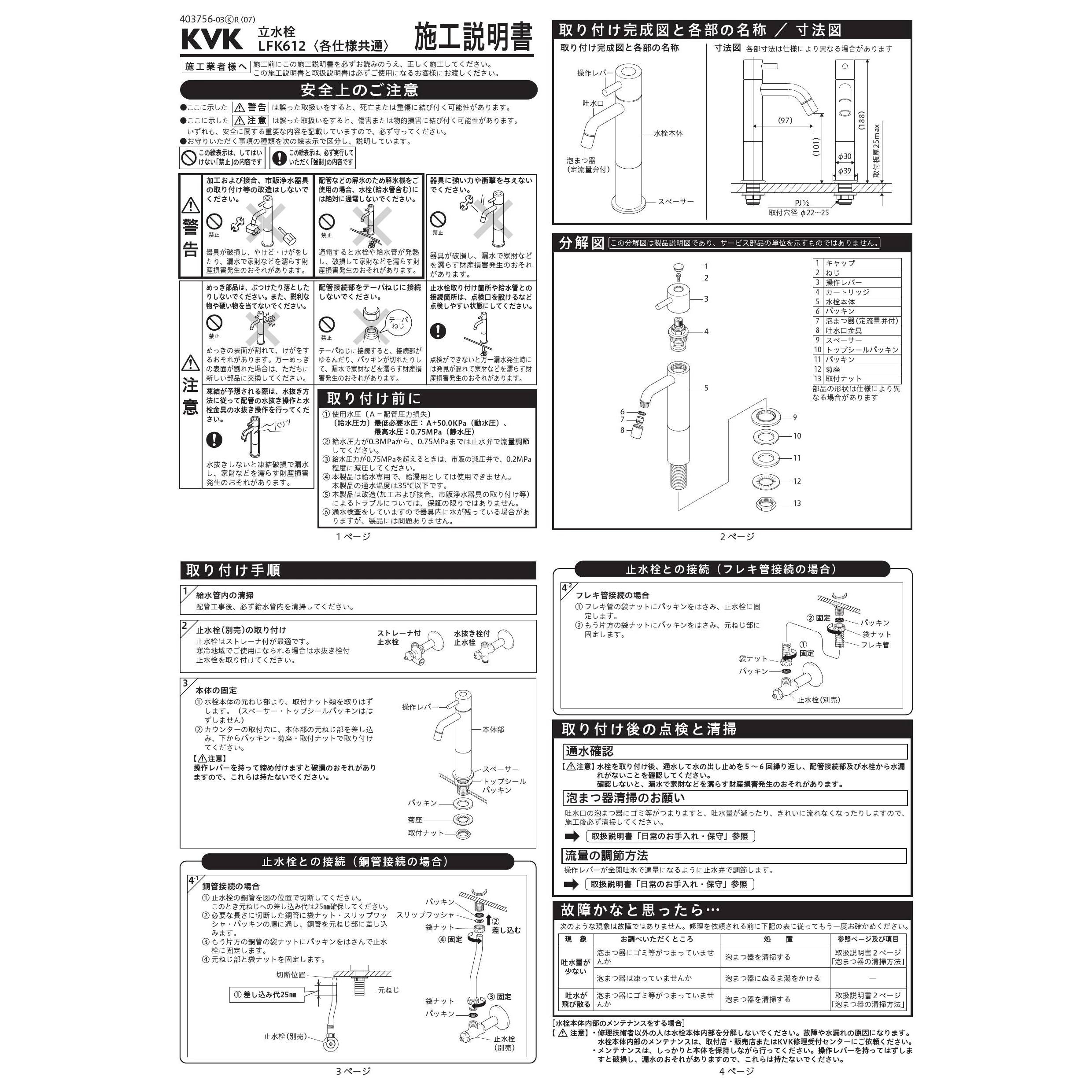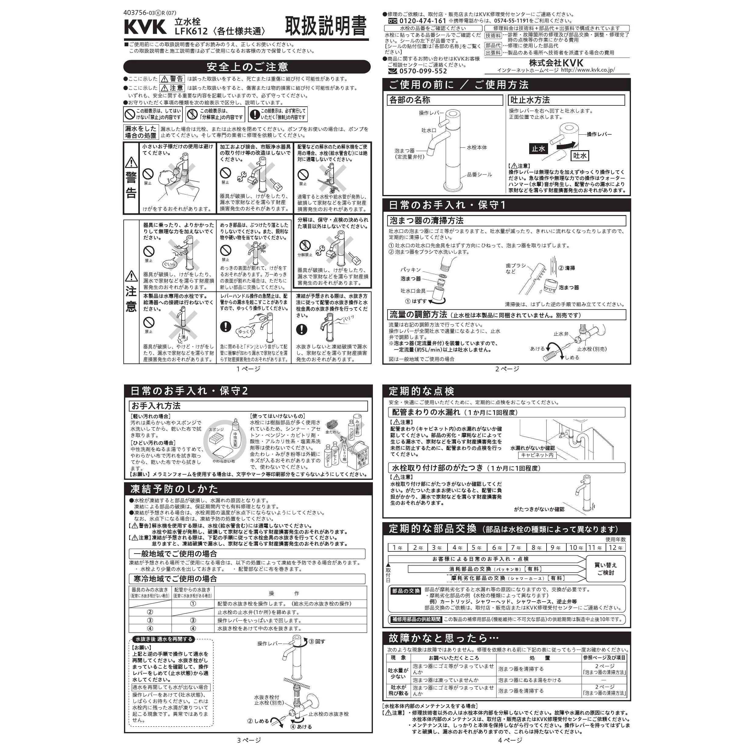 KVK LFK612-110 取扱説明書 商品図面 分解図