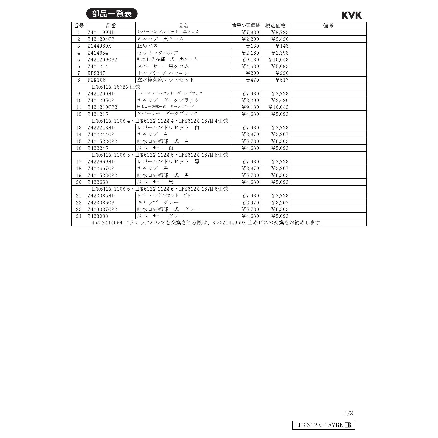 KVK LFK612X-112M4 取扱説明書 商品図面 分解図
