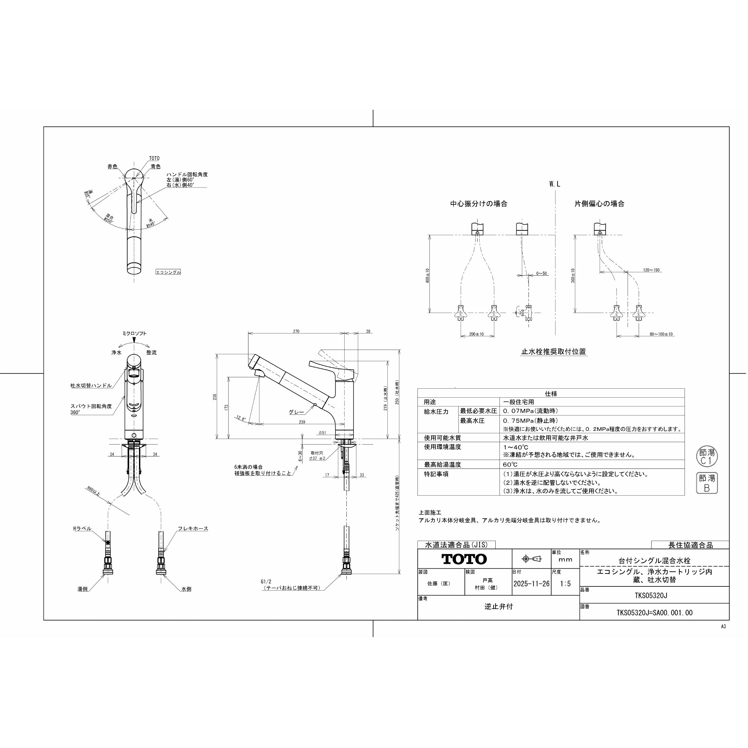 TOTO TKS05320J 取扱説明書 商品図面 施工説明書