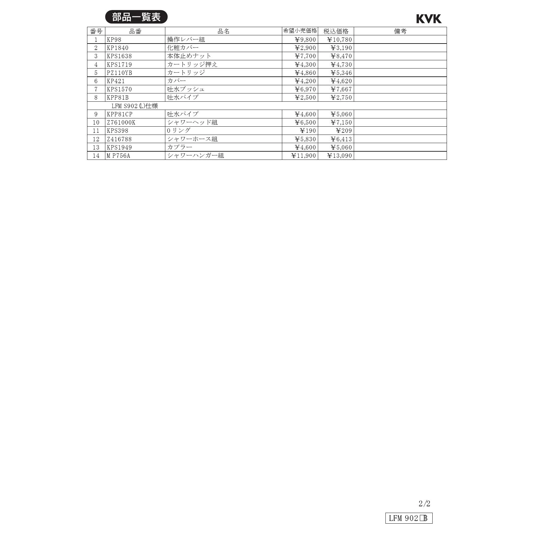 KVK LFM902L 取扱説明書 商品図面 分解図