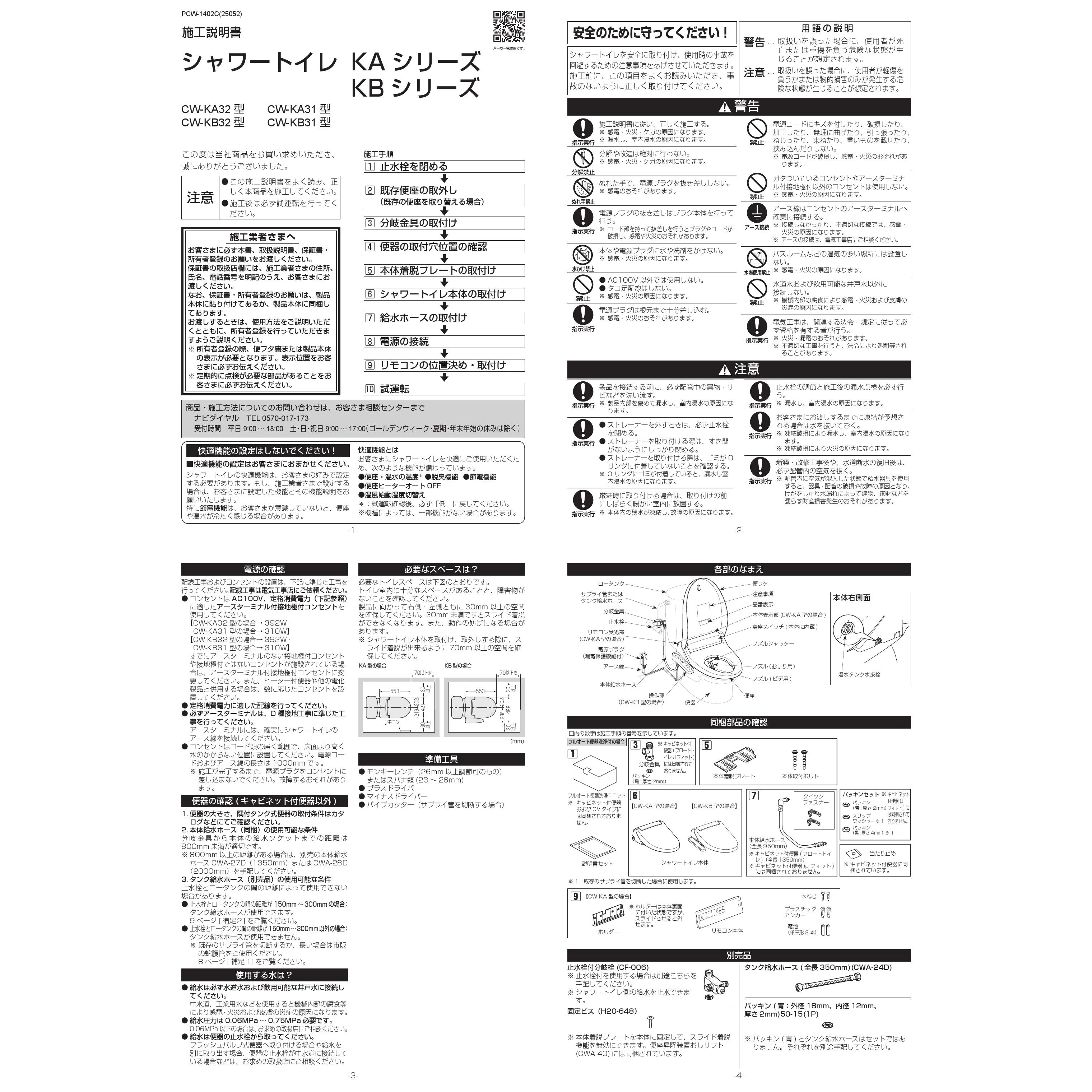 LIXIL(リクシル) CW-KB32A 取扱説明書 商品図面 施工説明書