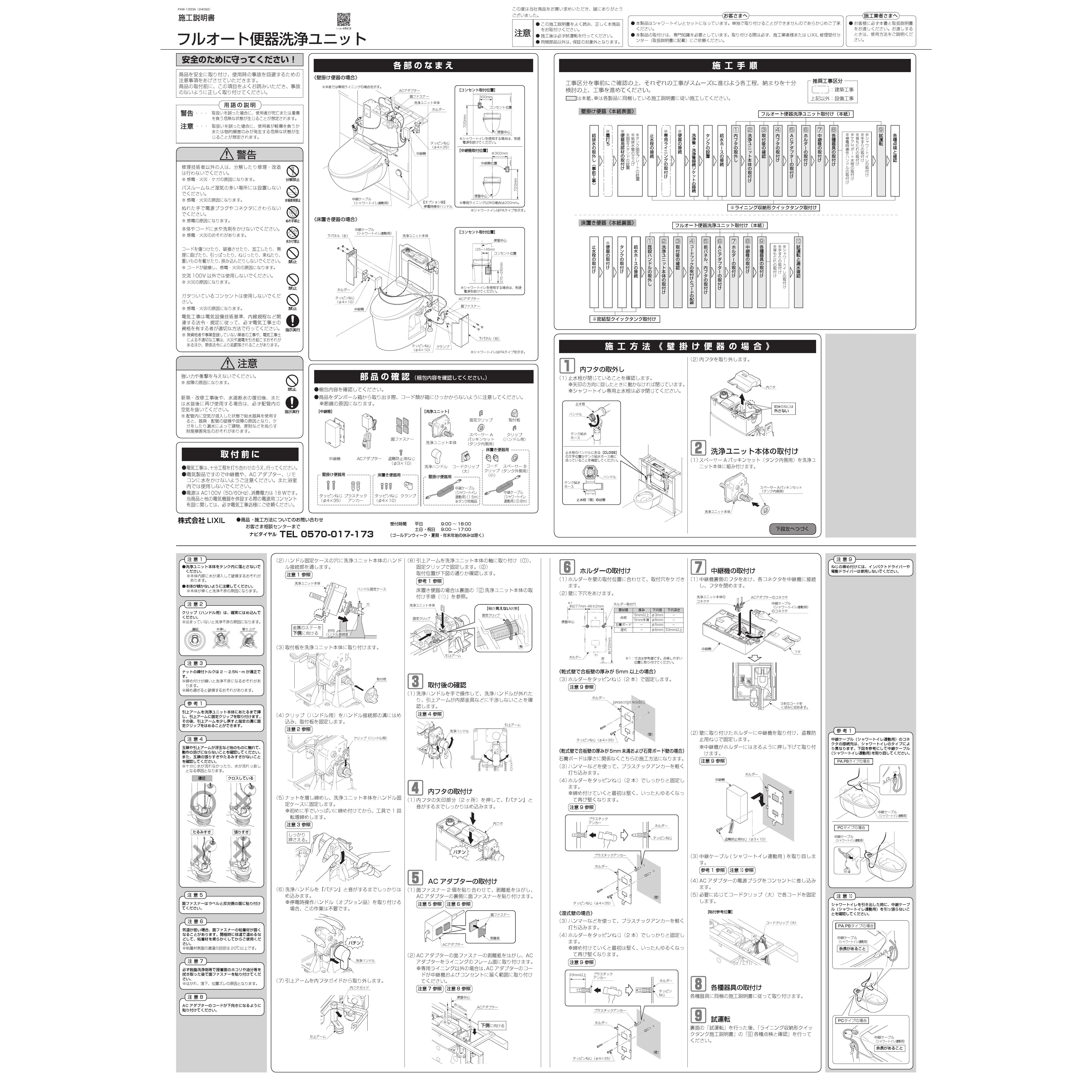 CW-PA21AQE-NEC フルオート便器洗浄ユニット施工説明書