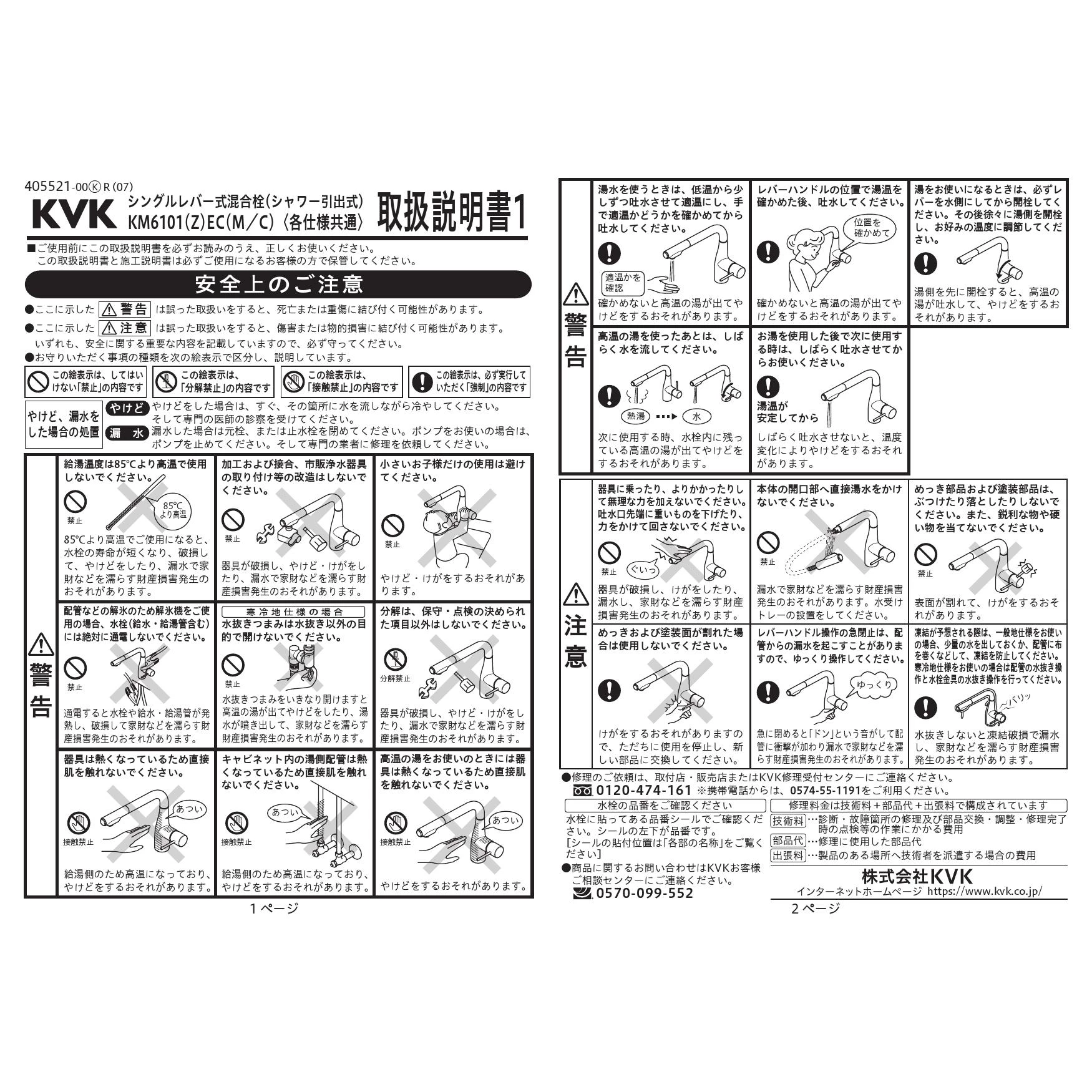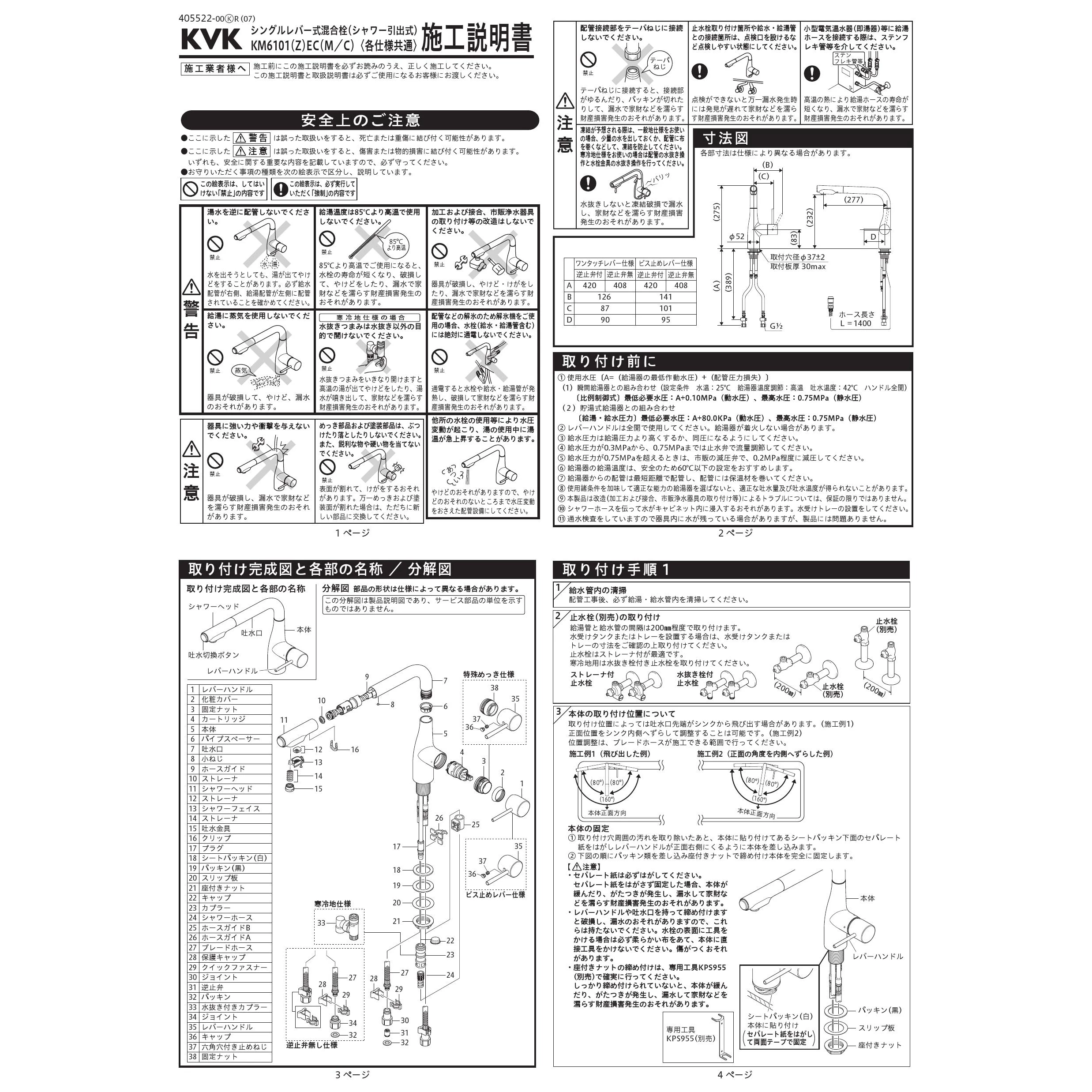 KVK KM6101ECBR 取扱説明書 商品図面 施工説明書